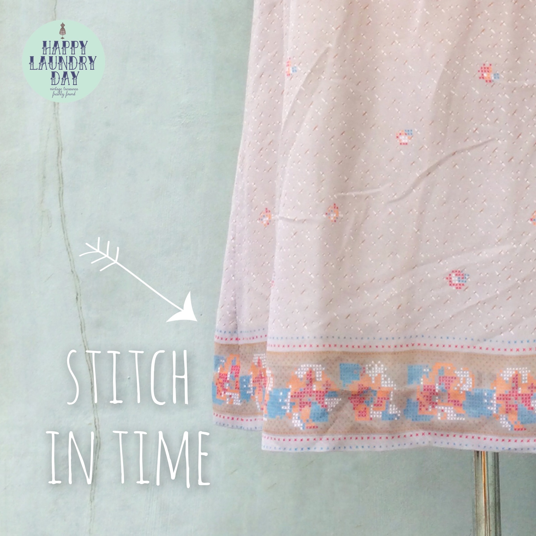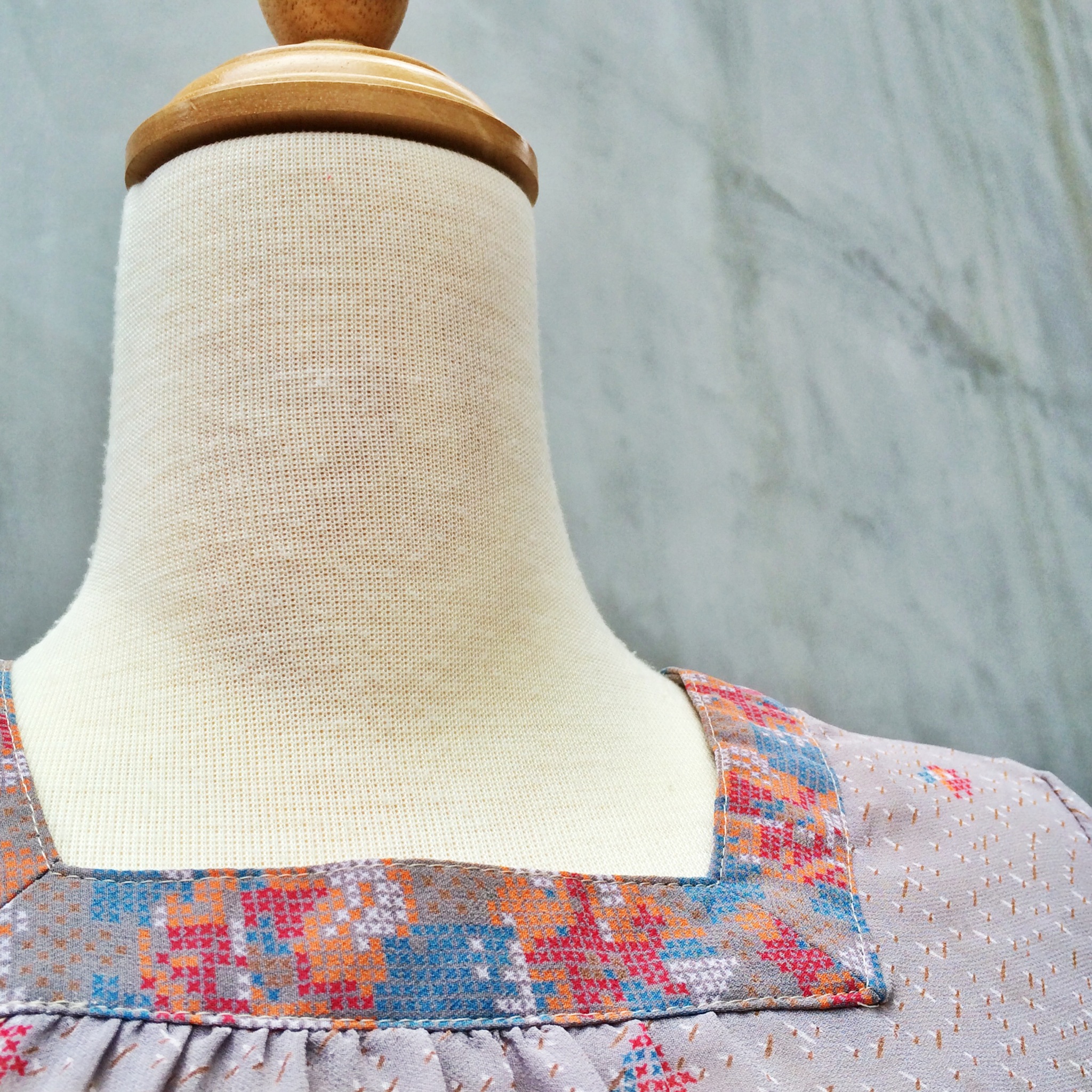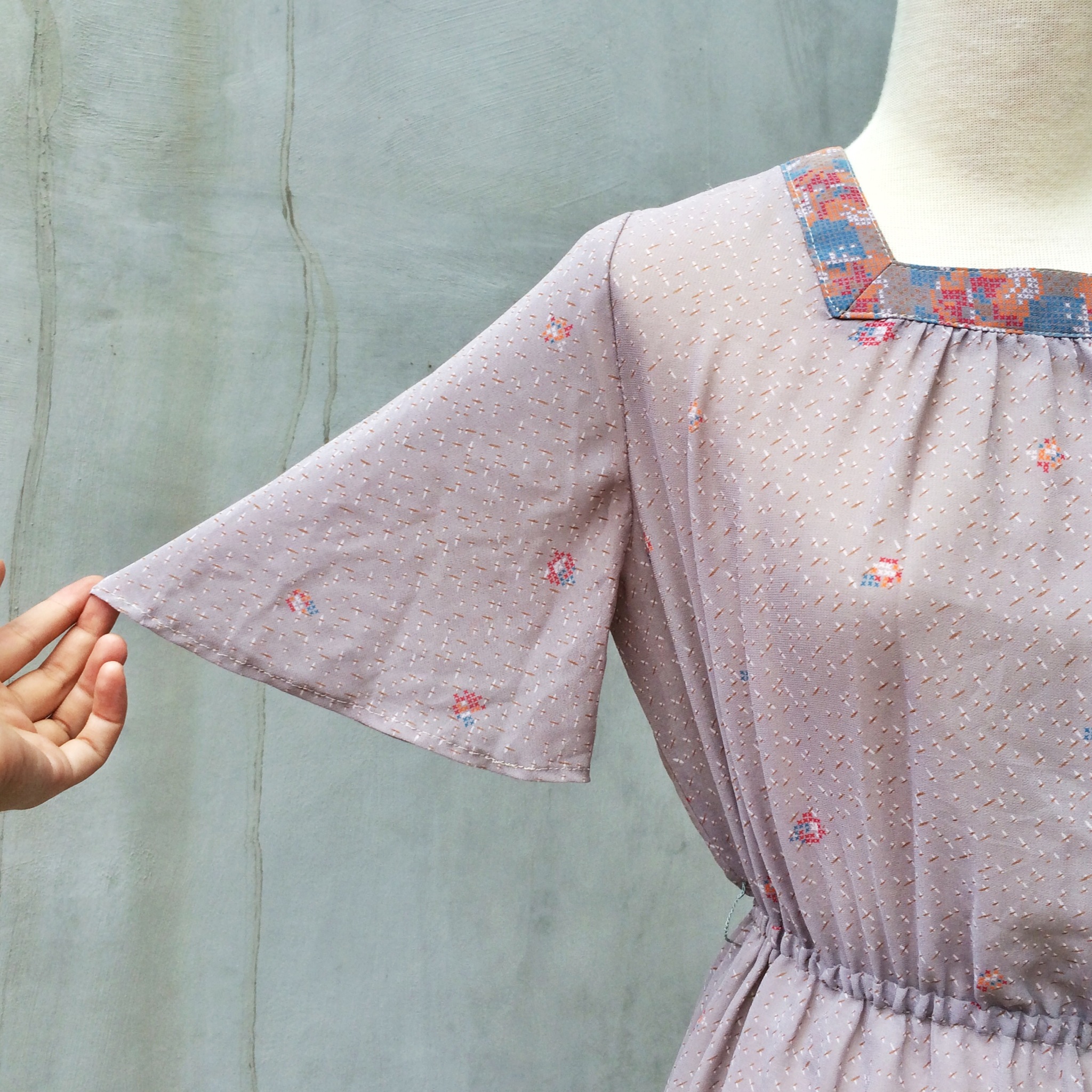 A beautiful cross-stitch print in reds and oranges with little dashes scattered over a elegantly-cut silhouette. Loving the flutter sleeves which are feminine and forgiving at the same time.