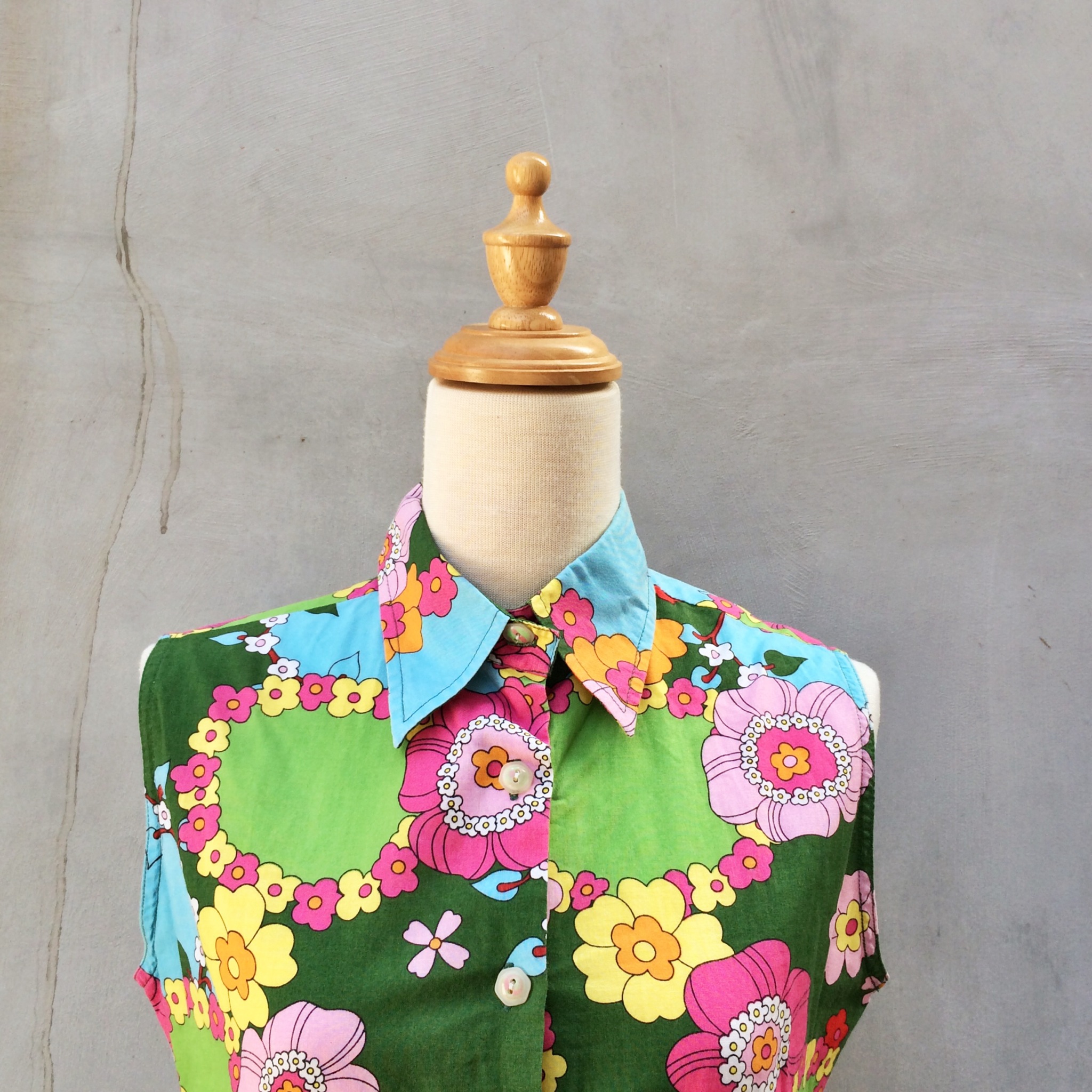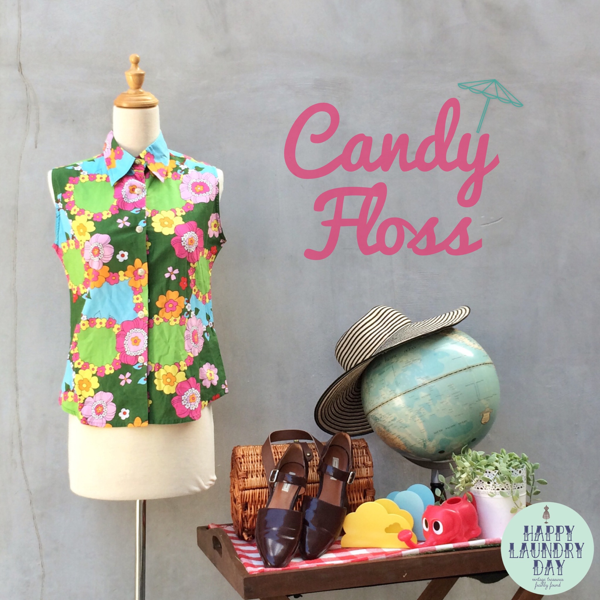 Candy Floss | Vintage c.1960s retro mod Pop art flower power print Blouse shirt { NEW IN } If the fact that we’re only 1 day away from the weekend doesn’t cheer you up, then this top certainly will! With it’s pop art retro 1960s flower power print and strong vibrant colors! Best fits a S-M. Get it here! Share this: Share on X (Opens in new window) X Share on Facebook (Opens in new window) Facebook Like Loading... Related