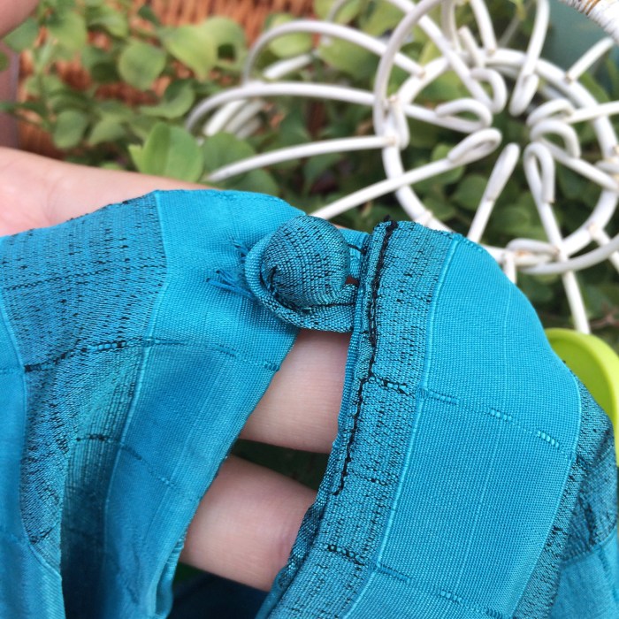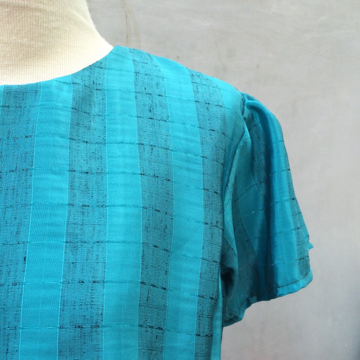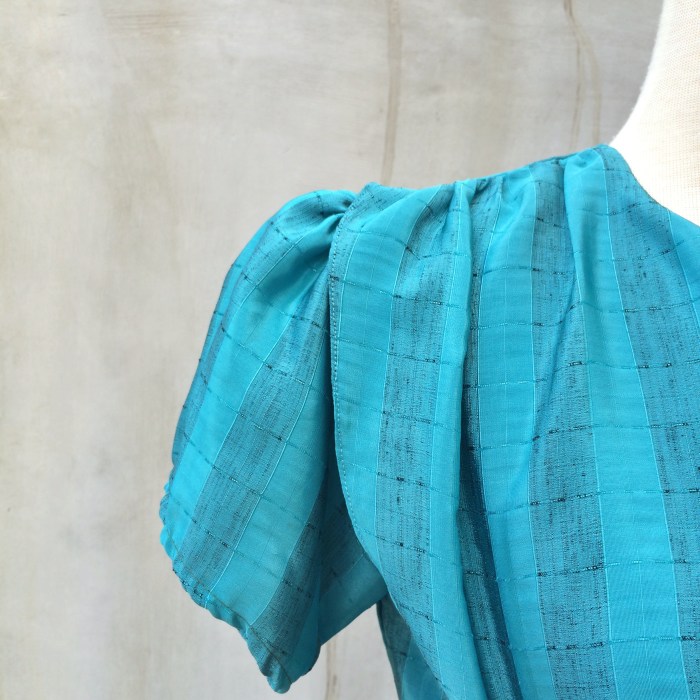 We love the pseudo lame fabric with from the shine the metallic threads which run through the beautifully soft and fluid turquoise blue fabric.