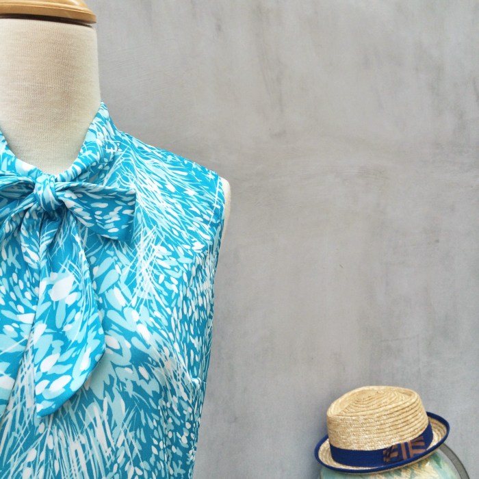 Comes with a secretary pussy-bow tie in the front but yet sleeveless. Quite subtly sexy if we may say so π