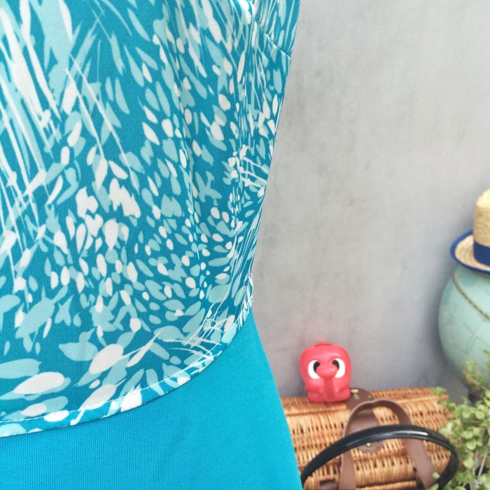Blue works. Because it comes in so many shades. And we love this for the beautiful shades of blue. Light and interspersed with white floral streaks on the top, and a solid bright (but not neon) turquoise blue at the bottom).