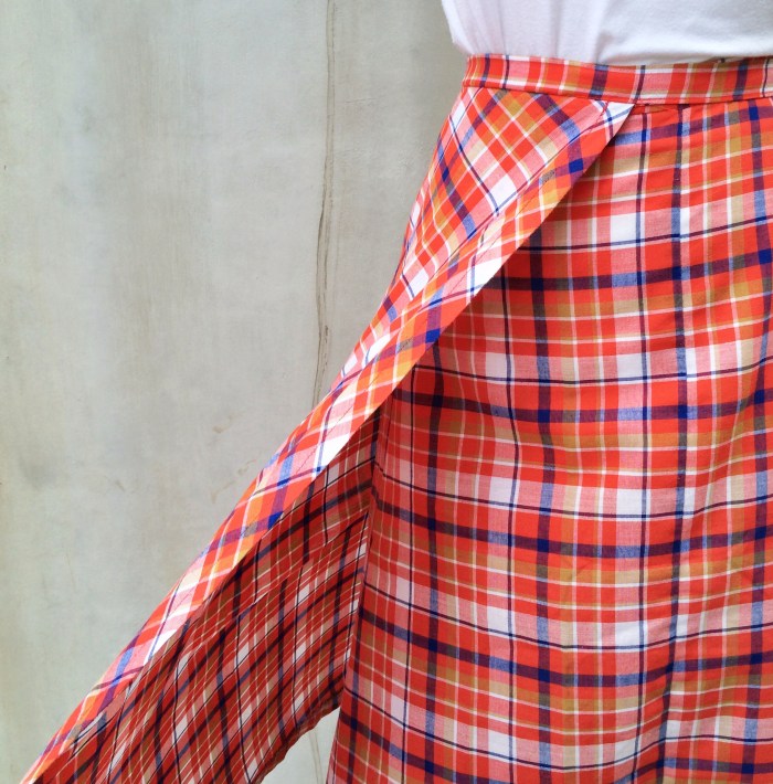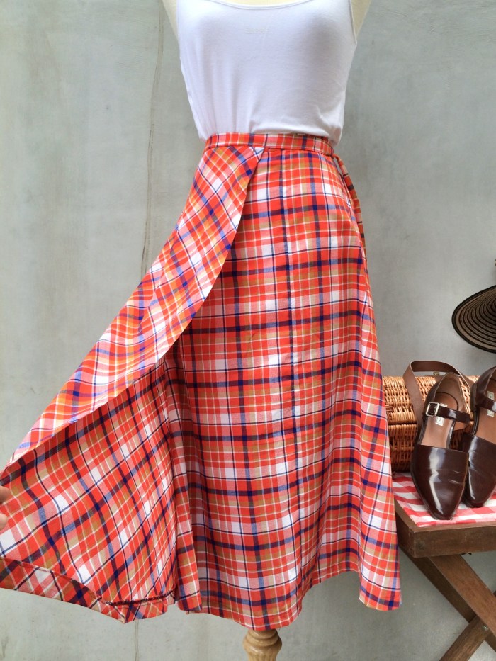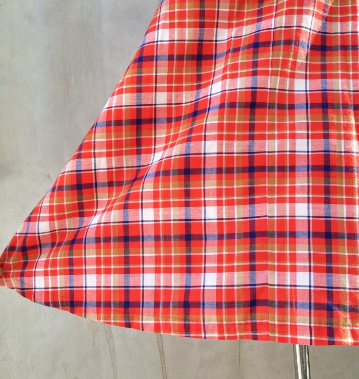 Wintry christmas colors yet light enough for hot weather and lovely full swing skirt slhouette. Perfect for the 1950s sex-bomb look with T-strap angle booties, a simple black body-hugging top and a pillbox hat.
