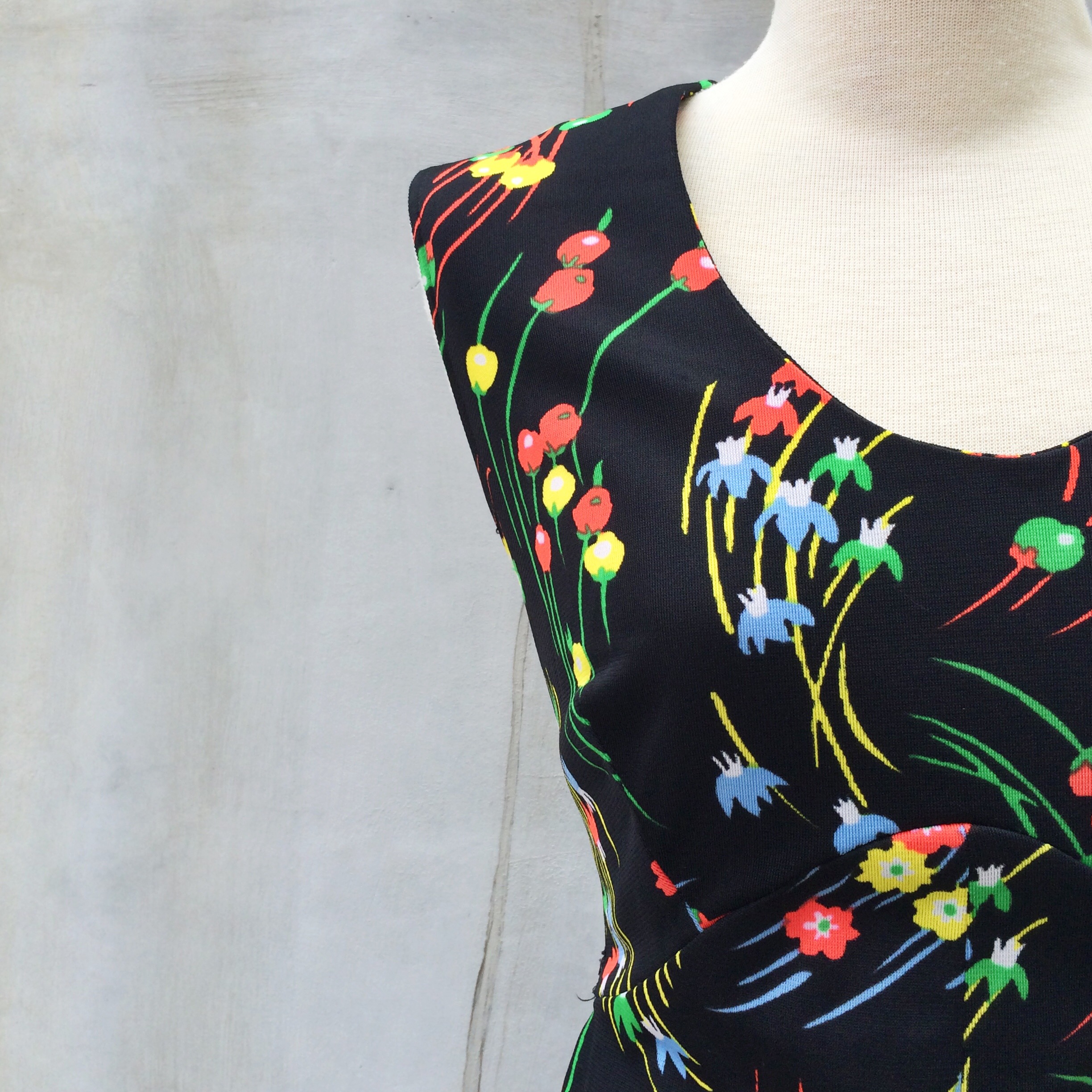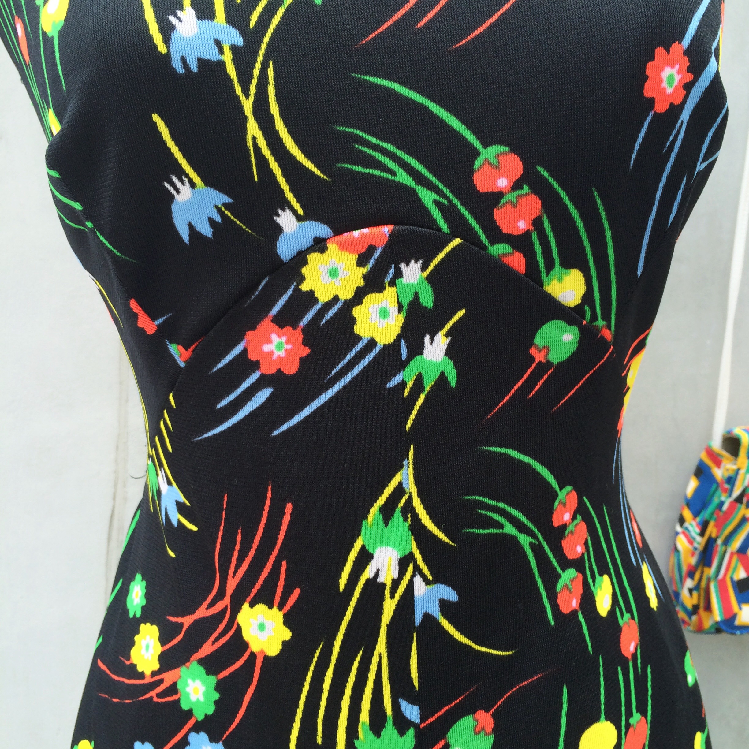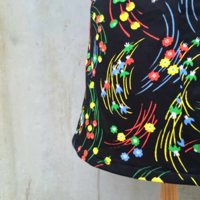 This is a really cool way to wear neon. Black with pops of floral colors and swirls all over!