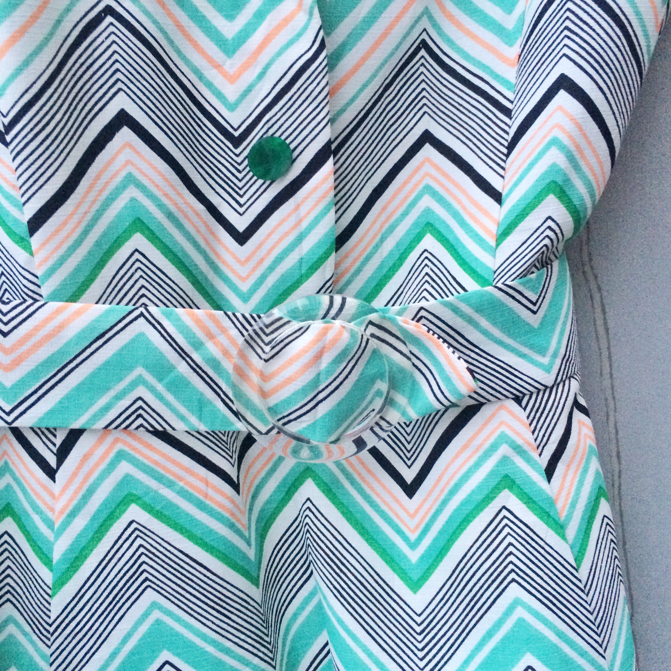 It originally came with sleeves which we removed so it’d be easier to wear. Comes with a matching fabric belt too!