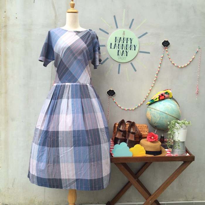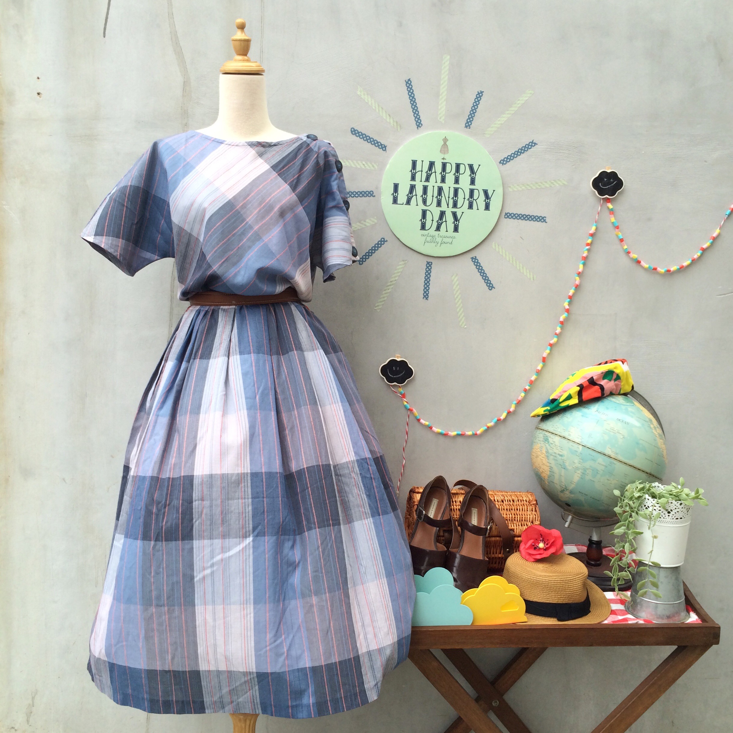 This rockabilly style plaid checkered calf-length cotton dress with the cutest shoulder button details and POCKETS has all those colours and just a little bit more 😉