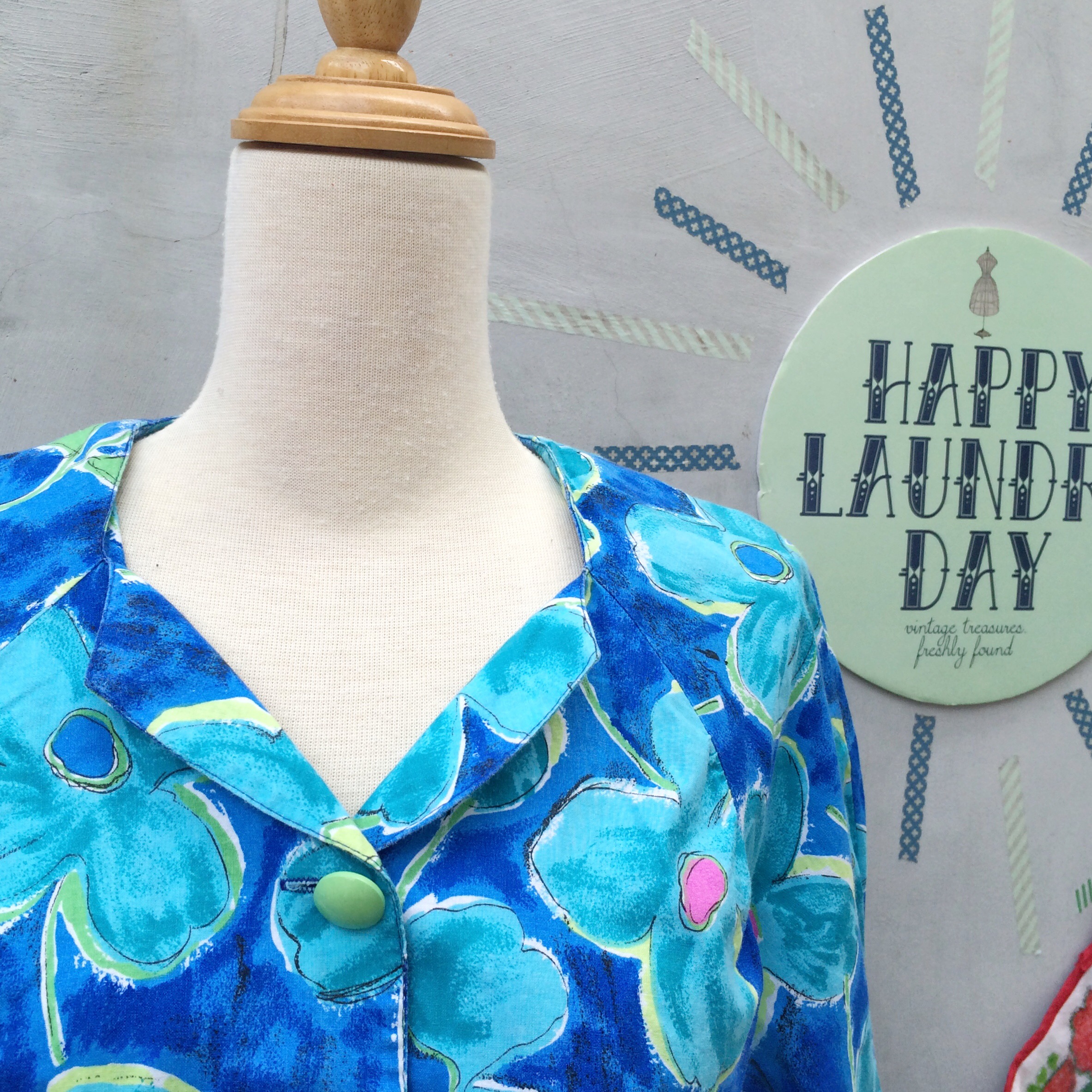 And one big and bold HUGE floral print dress with delicious green buttons and pockets! + a versatile neckline with the collar flipped up or folded down.