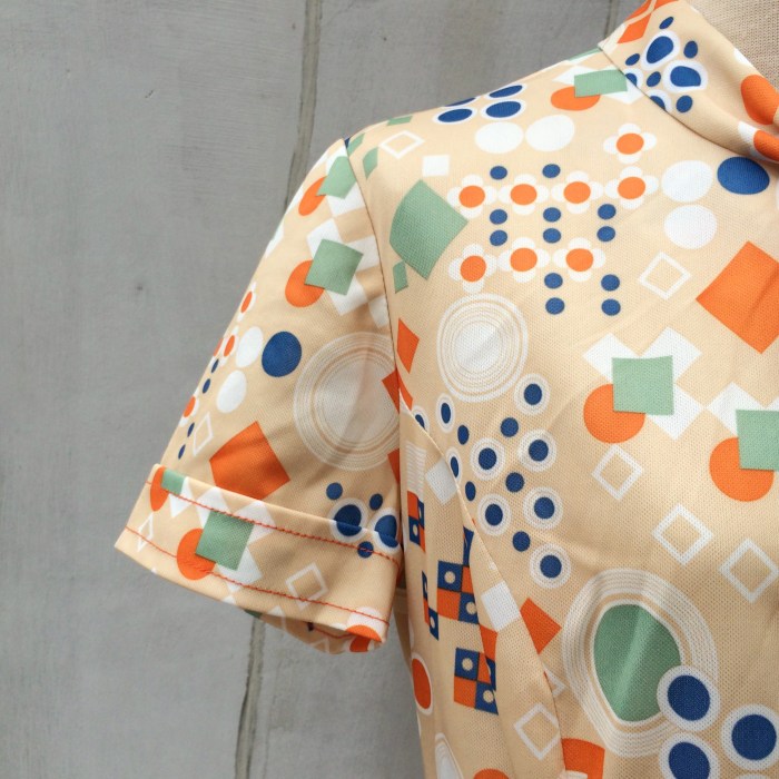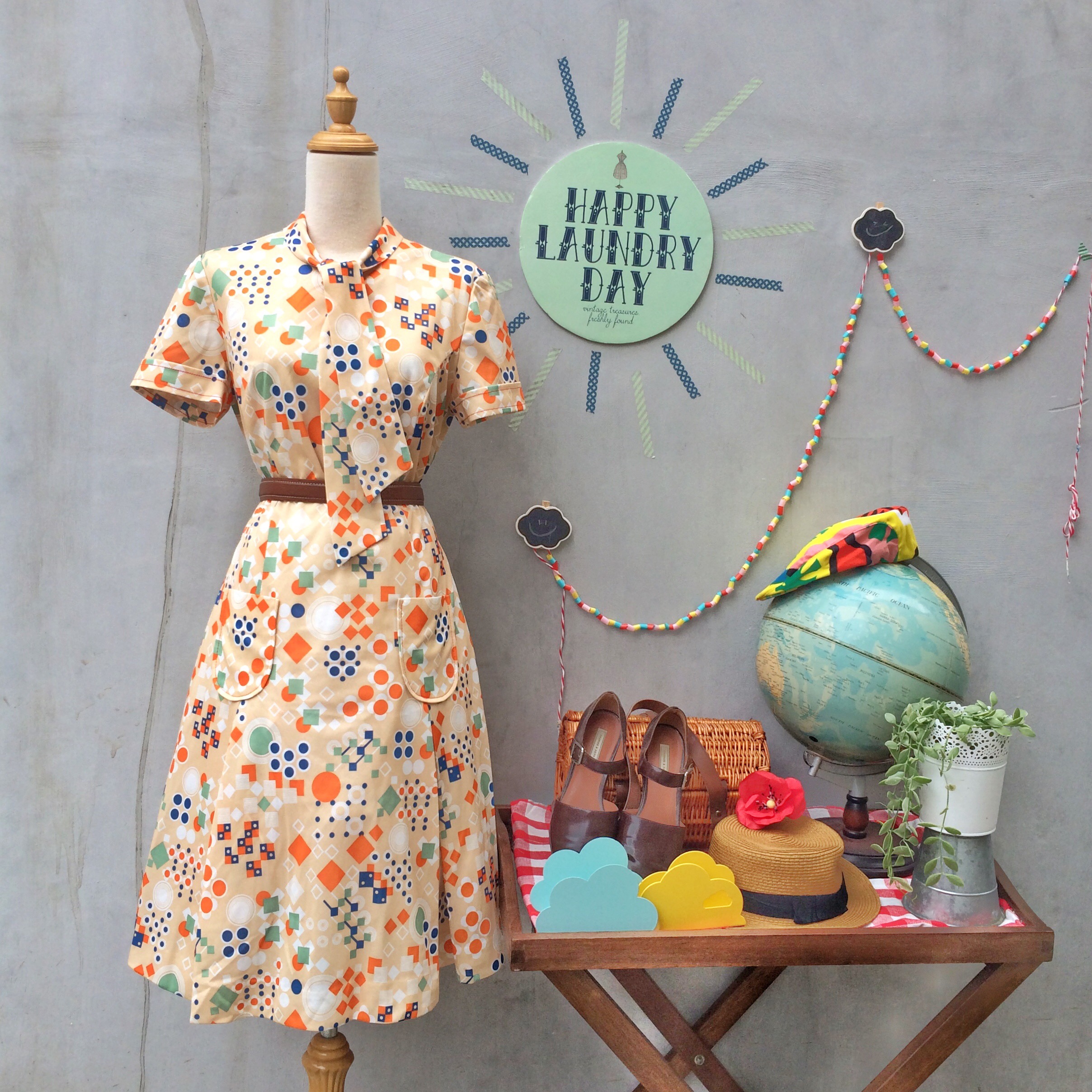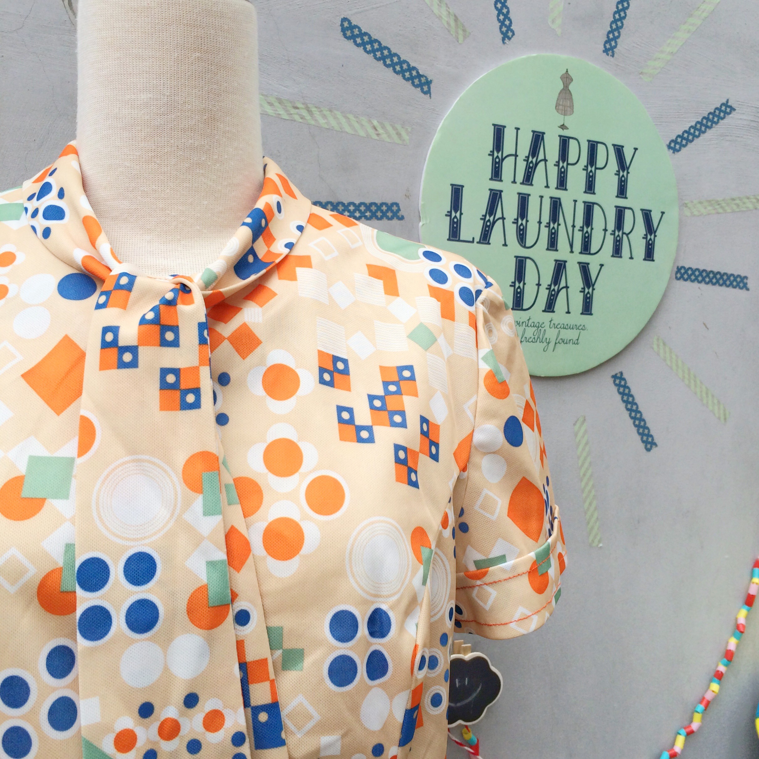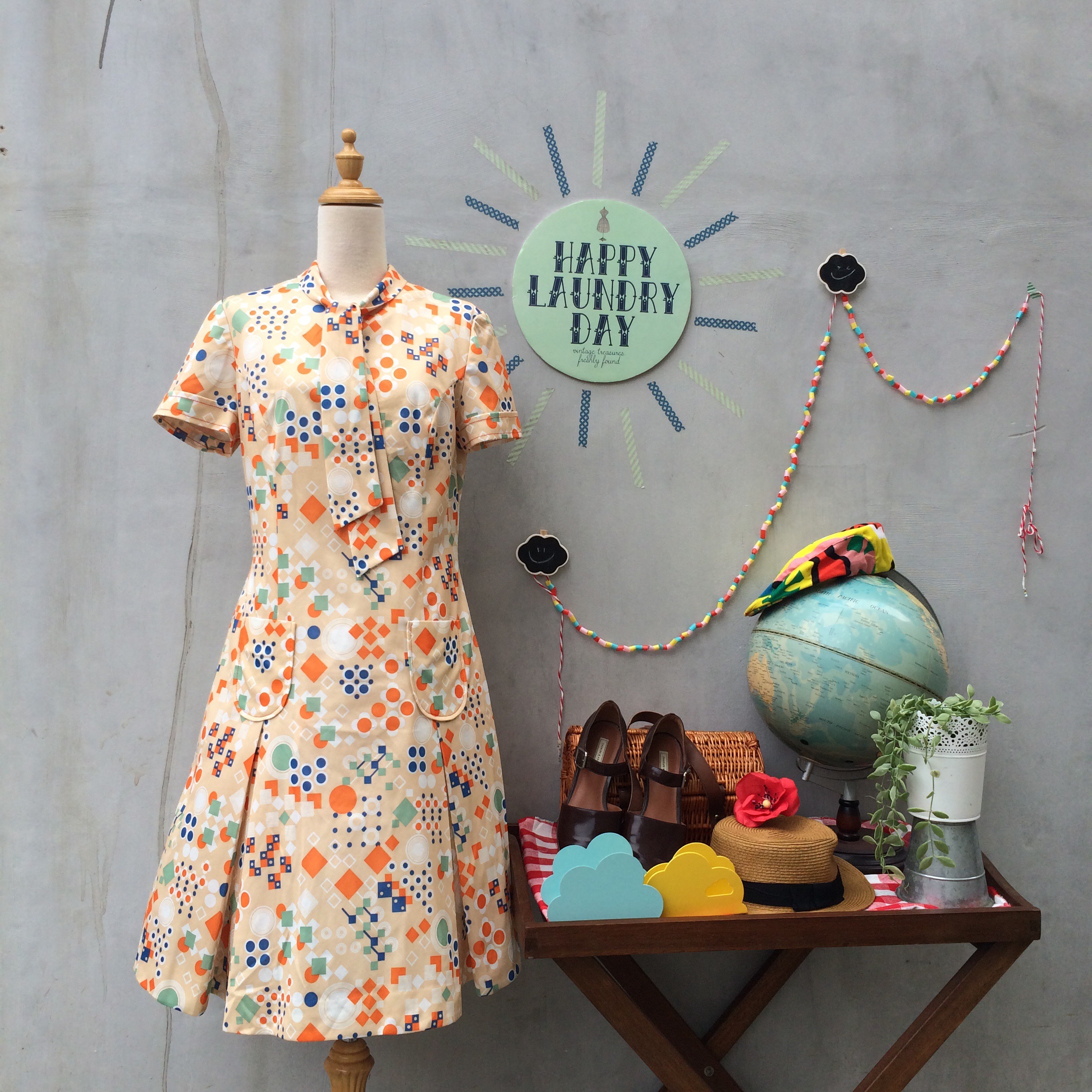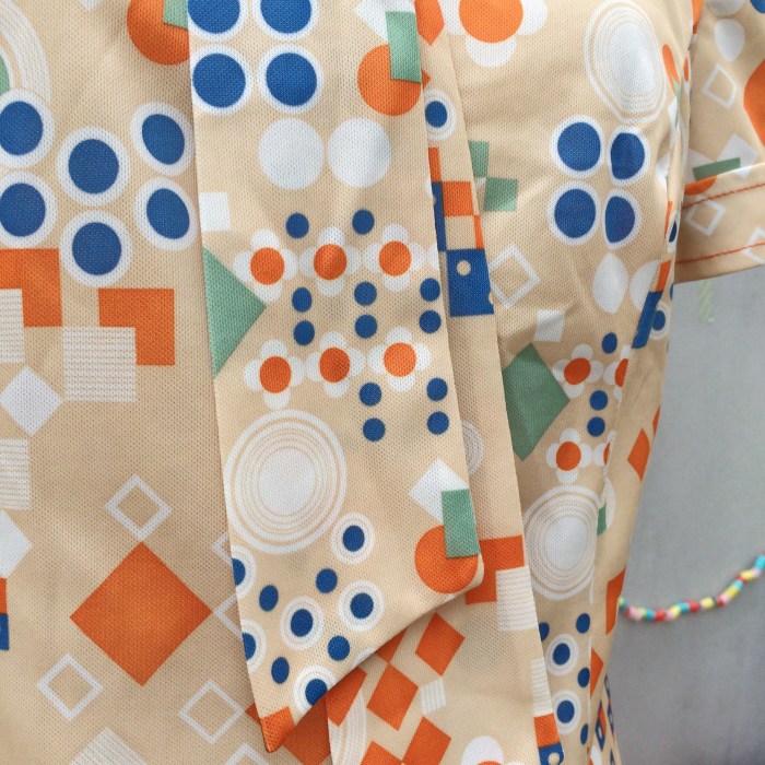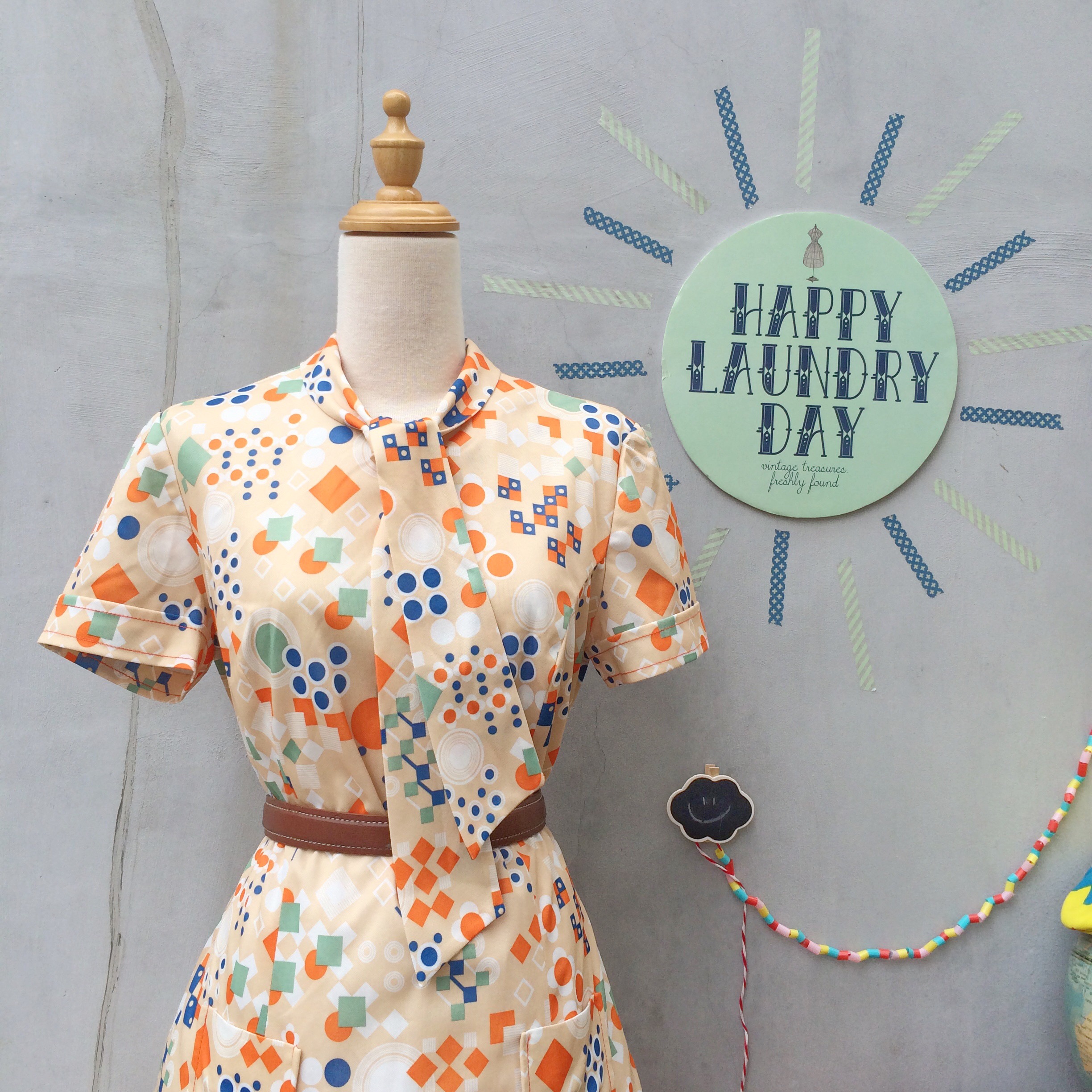 Scooter Dresses are such a classic 1960s silhouette. Slight drop waist. Worn loose but flirty. And such detail in the print and neck-tie.