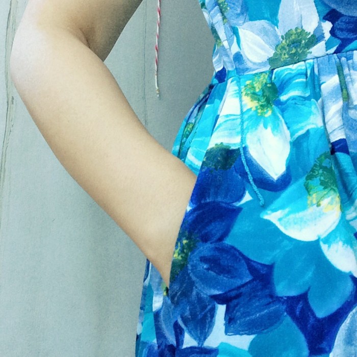 This 1950s floral palazzo pants jumper/romper with its camellias (or dahlias) print is simply amazing. It’s not often we find something this good, and in such good condition too!