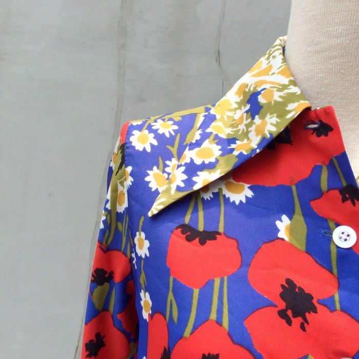 Wear a painting won’t you? The 60s floral print vintage look is all the rage and in this pointy-collared shirt with its Marimekko-inspired poppies style print would be fabulous!