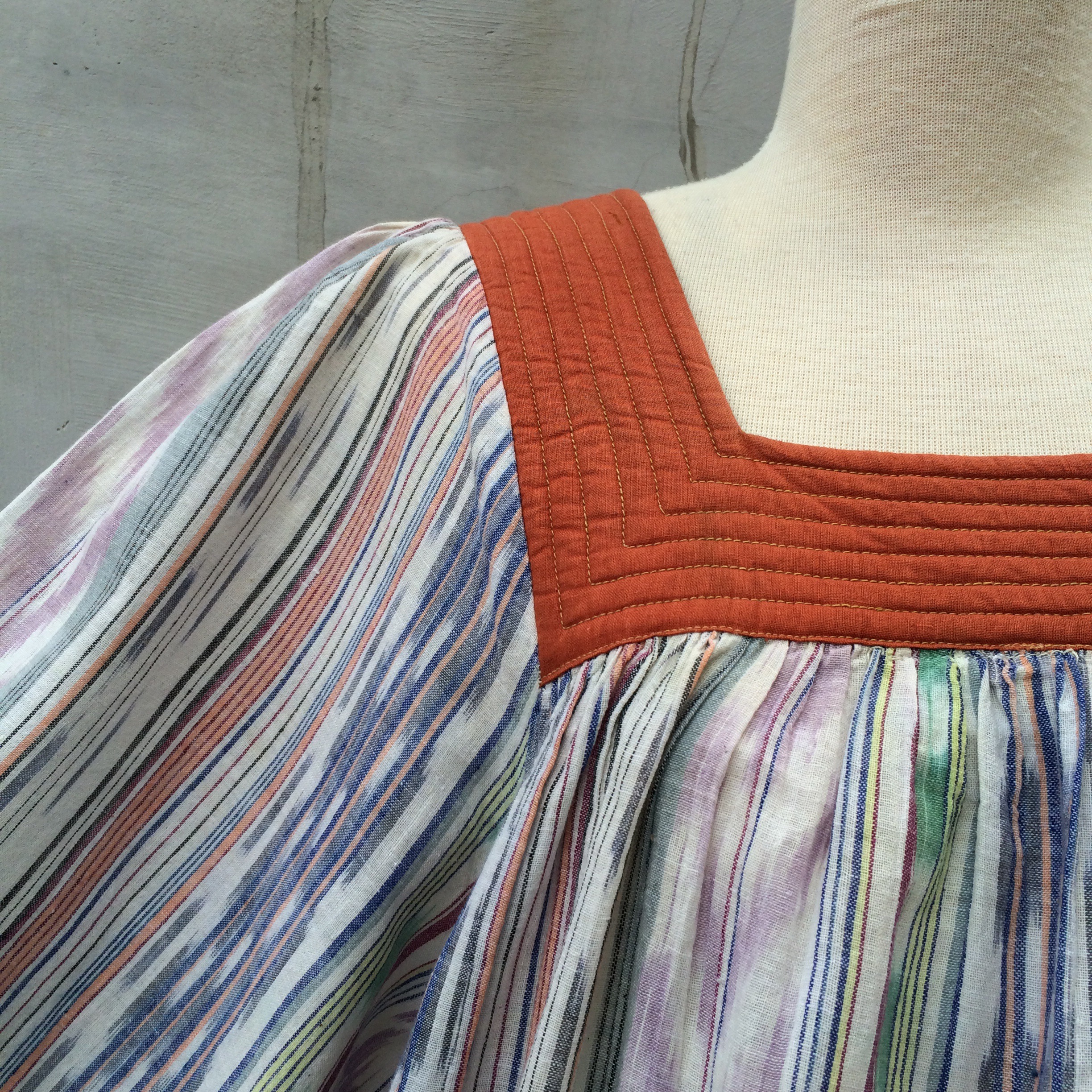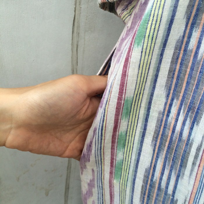 Such a cool hippie cotton/linen dress with just the right about of frills and sleeves that hide our *ahem bits, and POCKETS! Oh gosh, pockets, we do so love you.