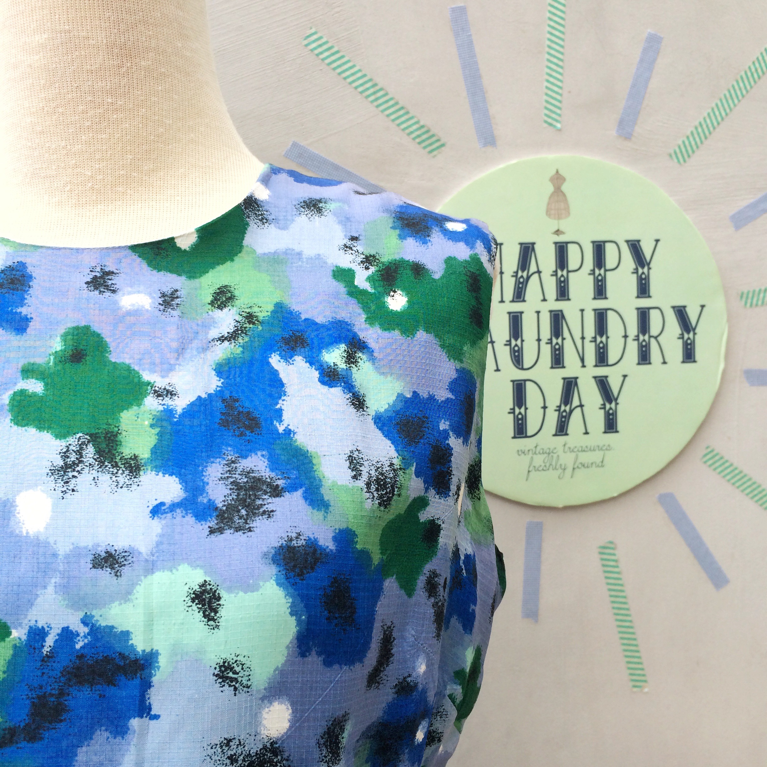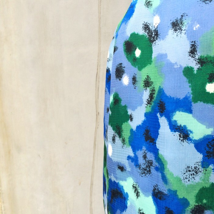 The water-colour, matisse-style print on this 1950s/60s shift (or wiggle) dress gives it such a dreamy feel.