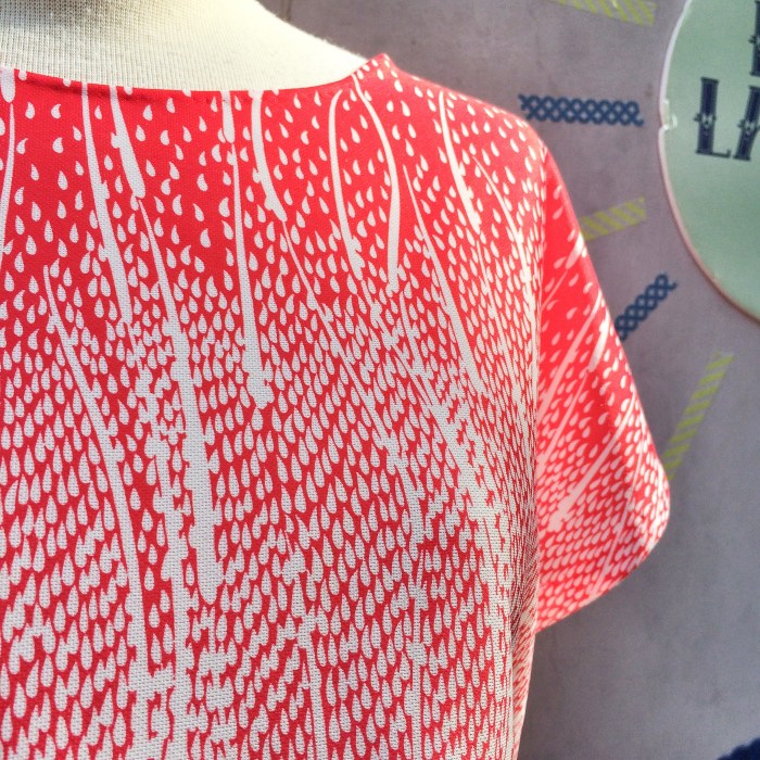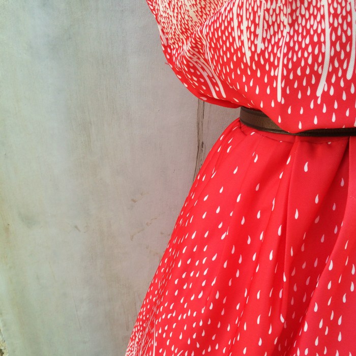 Bright. – Fireworks at the summer campfire and a generously-sized 1930s 1940s long silhouette. The coral pink is so great for a walk down the riverside or at the fun fair!