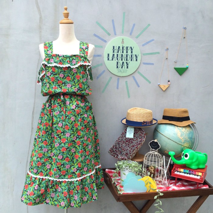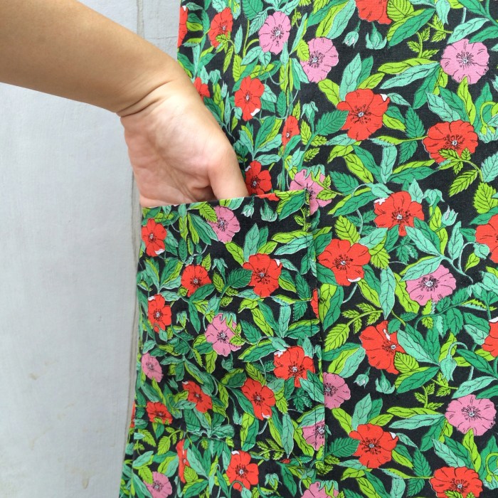 Ok before we get any cornier, just take a look at the fun jungle floral and leaf print. Just the hint of whites and just a slight lace/frill at the bustline and hem for that flirty summer look.