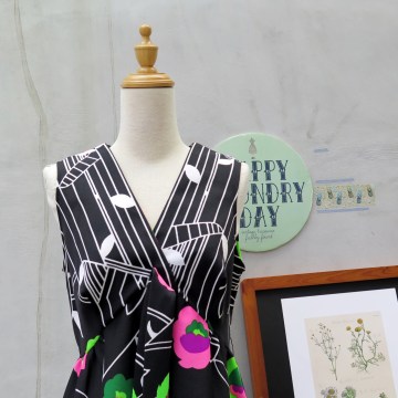 Karina | Vintage 1960s 1970s Neon floral Black white graphic print Maxi Gown Dress