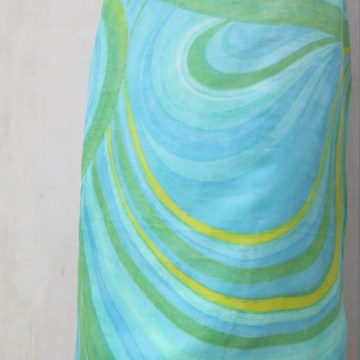 Kelly | Vintage 1950s 1960s Watercolor painting print Psychedelic Silky Shift Dress