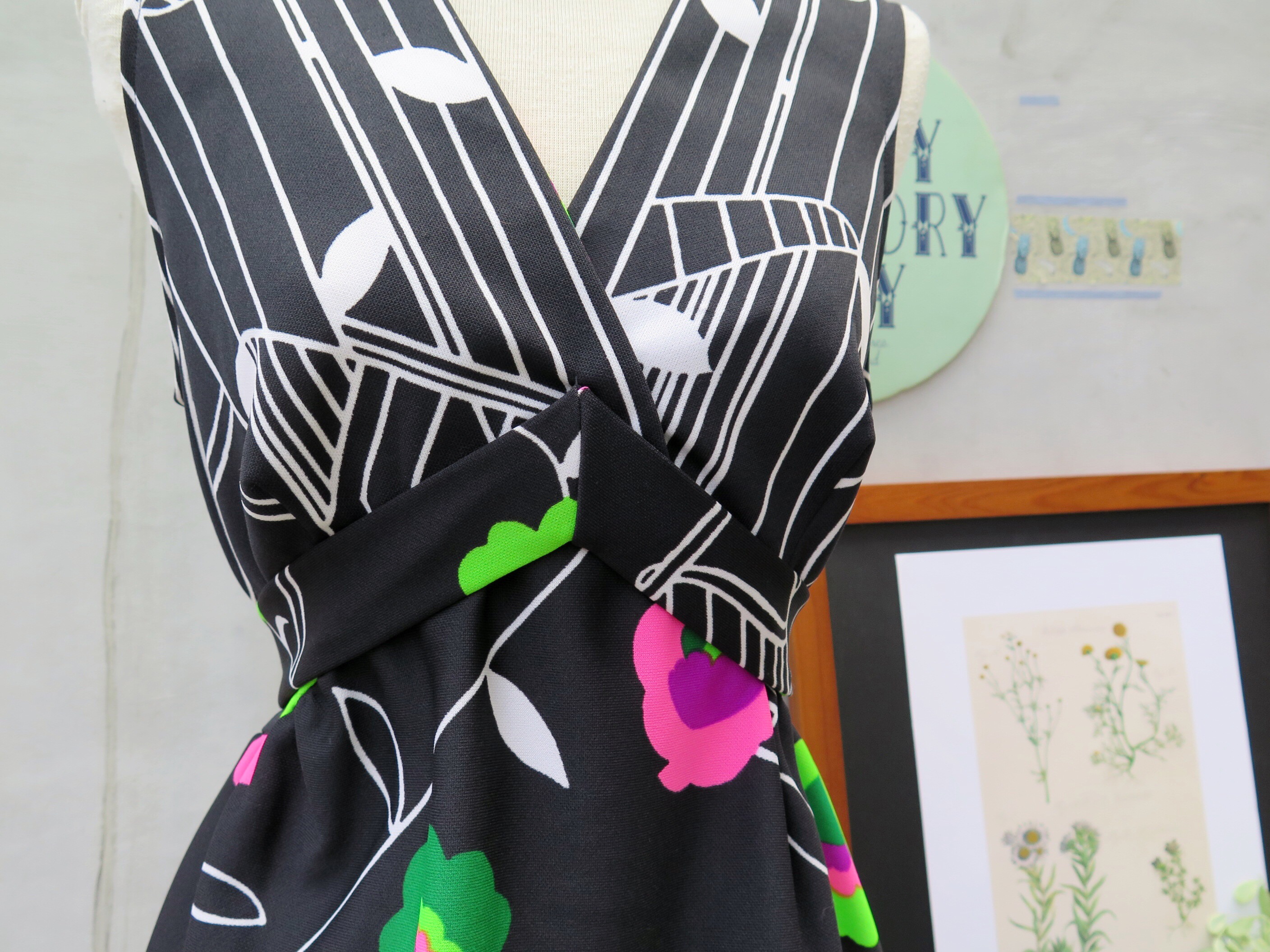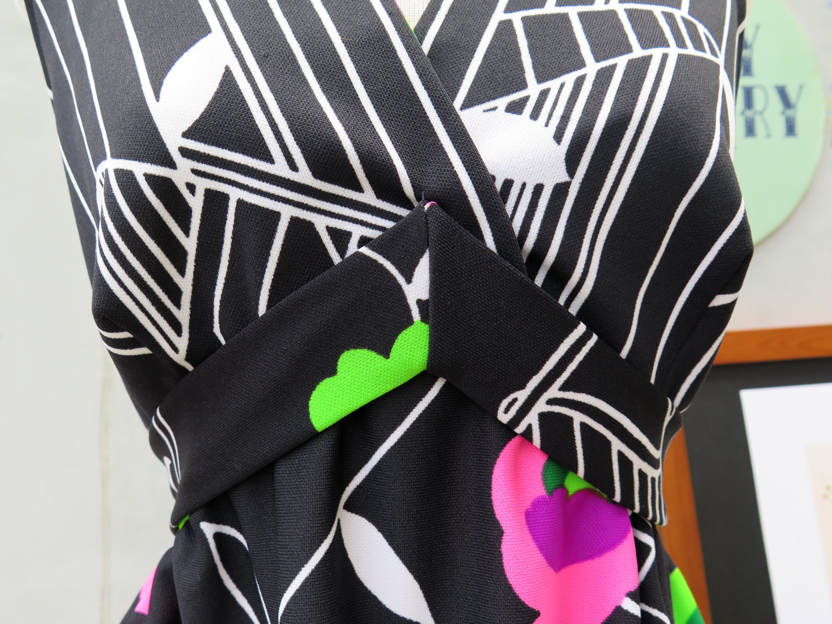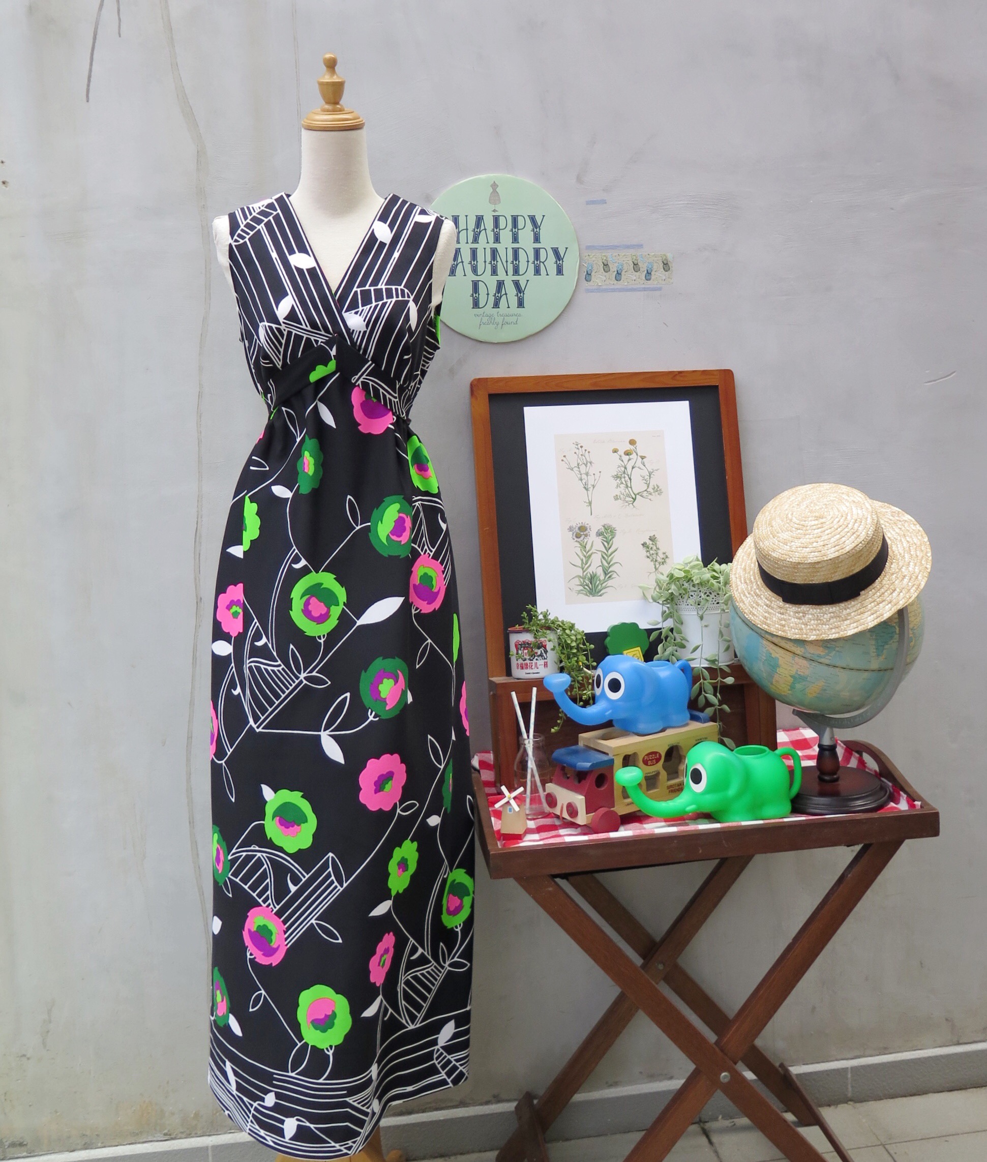 This lady has a hippie feel about her, quite the 60s semi-formal gown or maxi with a pinch of fun in the prints, the lines, the colours, the neon.