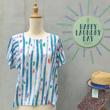 Schoolroom Vroom | Vintage 1980s Scribble print Striped cropped T-shirt