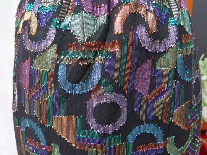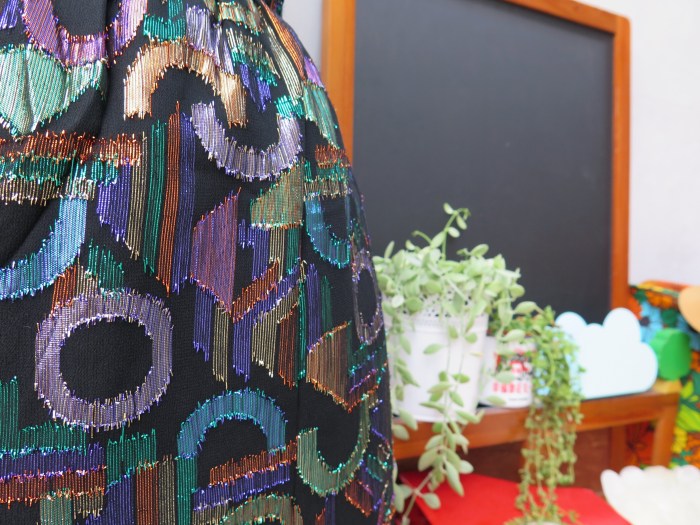 It’s totally ready to party and party it will! The print itself is already so very cool, with a variety of triangles, circles and semi-circles. Add metallic woven threads and voila!