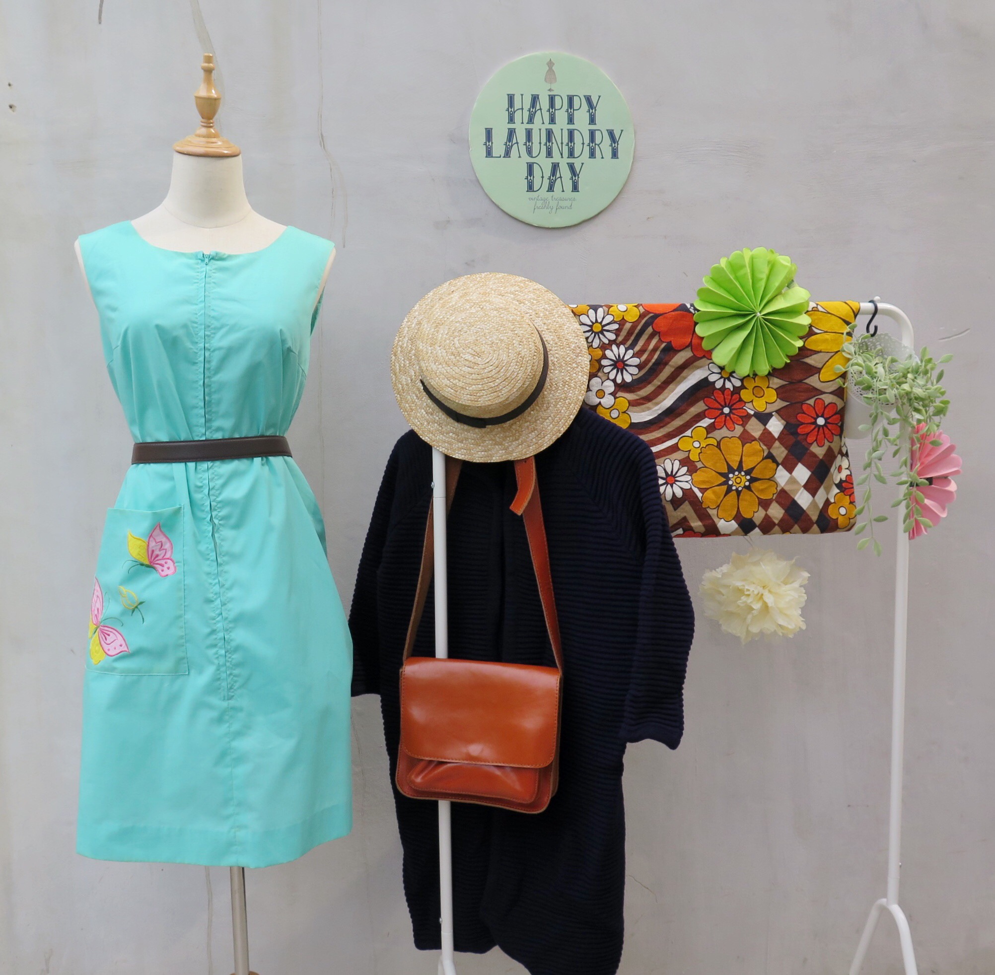 Zippety Doo Dah Day! A mint green A-line tent dress with an embroidered appliqué pocket from the 1950s/60s, Yay!