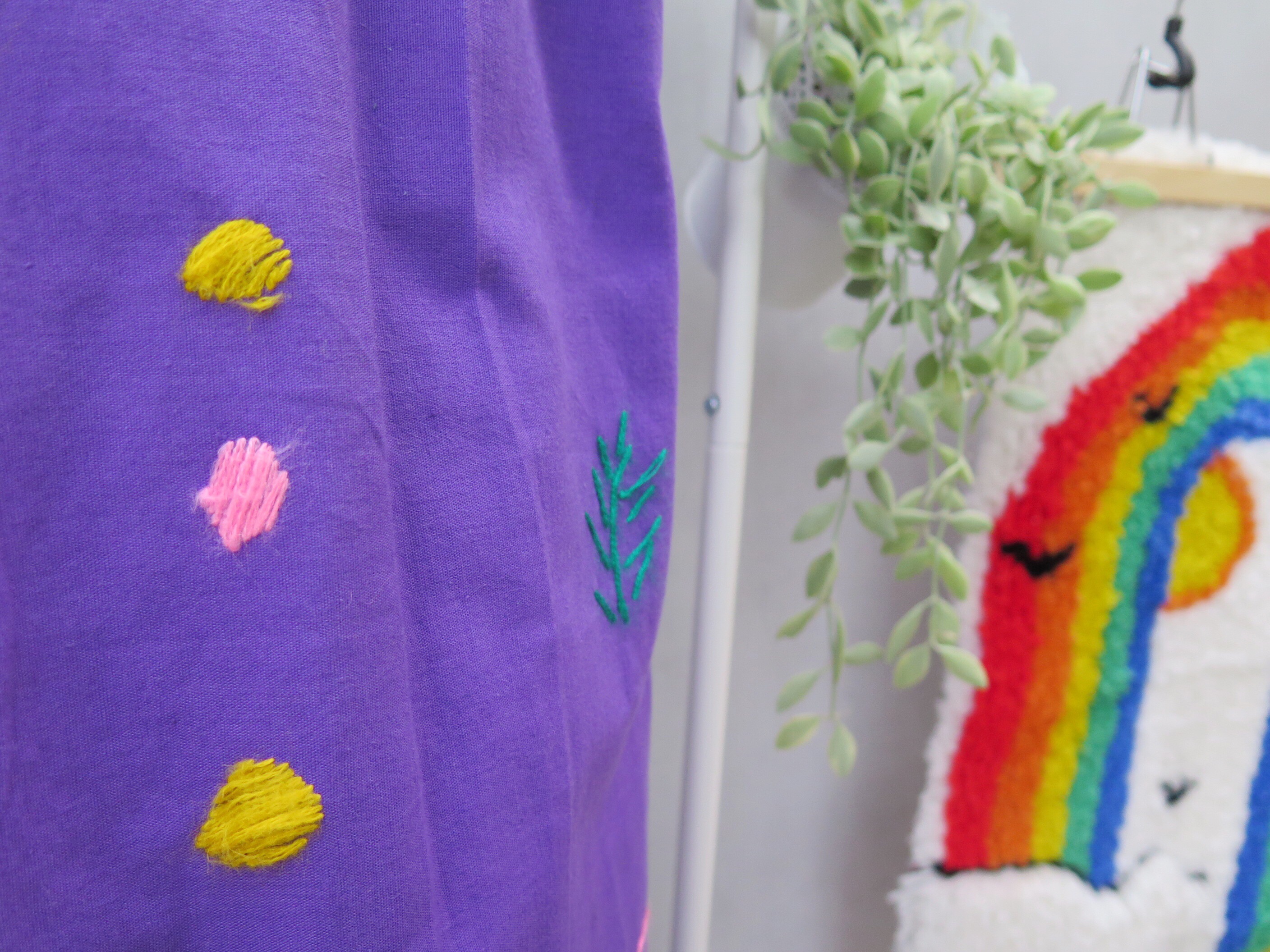 The happy purple color with a cheerful trio of pink, blue and yellow flowers. 😀