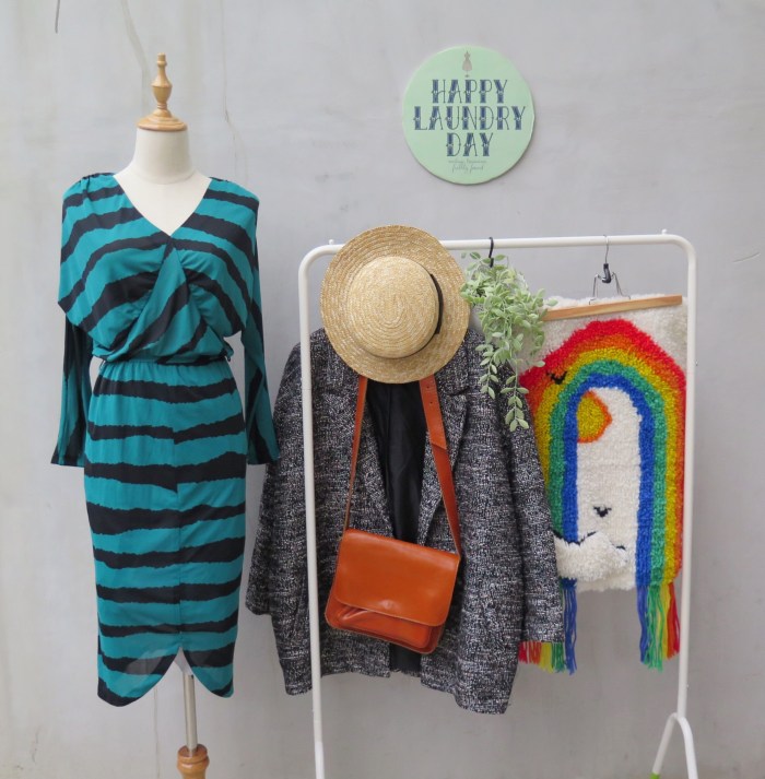 This has the sex-appeal of the 80s but in a covered up way and silhouette of the 40s – looser on the top and form-fitting at the bottom. We love the funky feel of the black and emerald green wavy stripes and how it could totally enhance the bust-area *ahem π for a fun and actually quite elegant look!