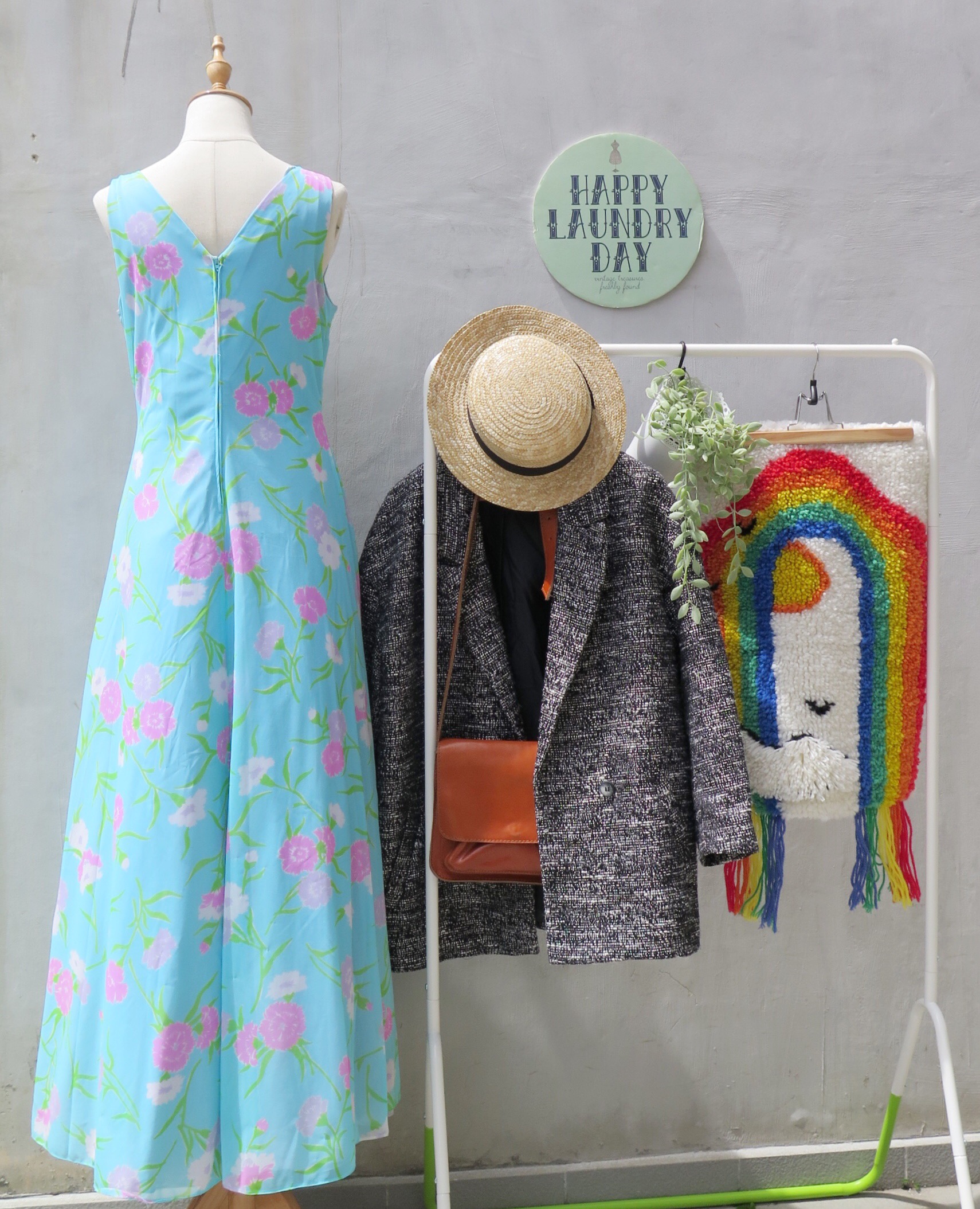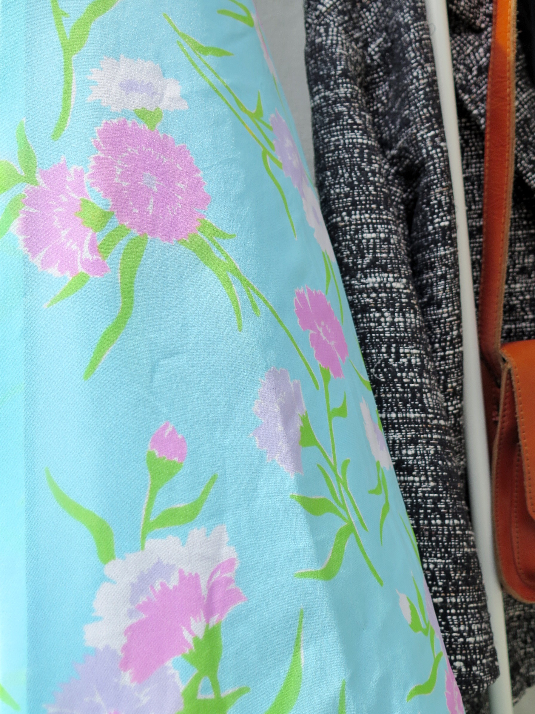 Loving this 60s/70s mix of blue, pink and purple florals. Fully lined too so it has structure and creates an elegant and elongating silhouette.