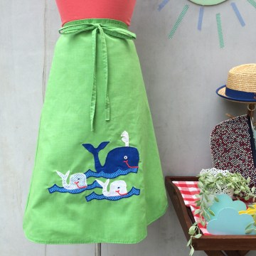 Whale you? | Vintage 1960s 1970s Whales appliqué Green Reversible Wrap Skirt