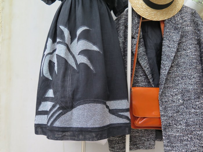 And this simple black day dress with her scalloped neckline and appliqué cutout palm trees and sand dunes will be perfect fluttering in the wind, blue skies and deep blue seas in the background.