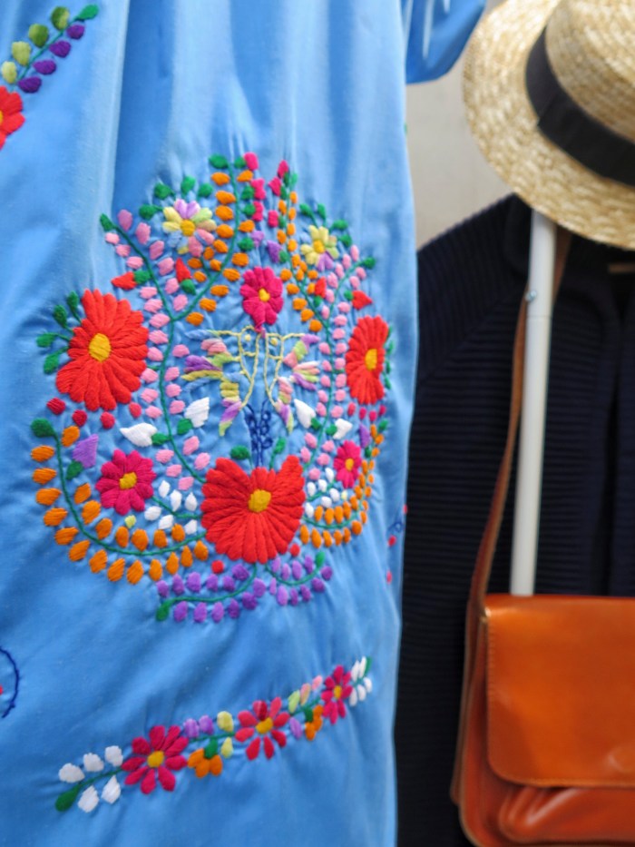 This vintage 1960s/70s Mexican embroidered dress best fits a XS/S – M.