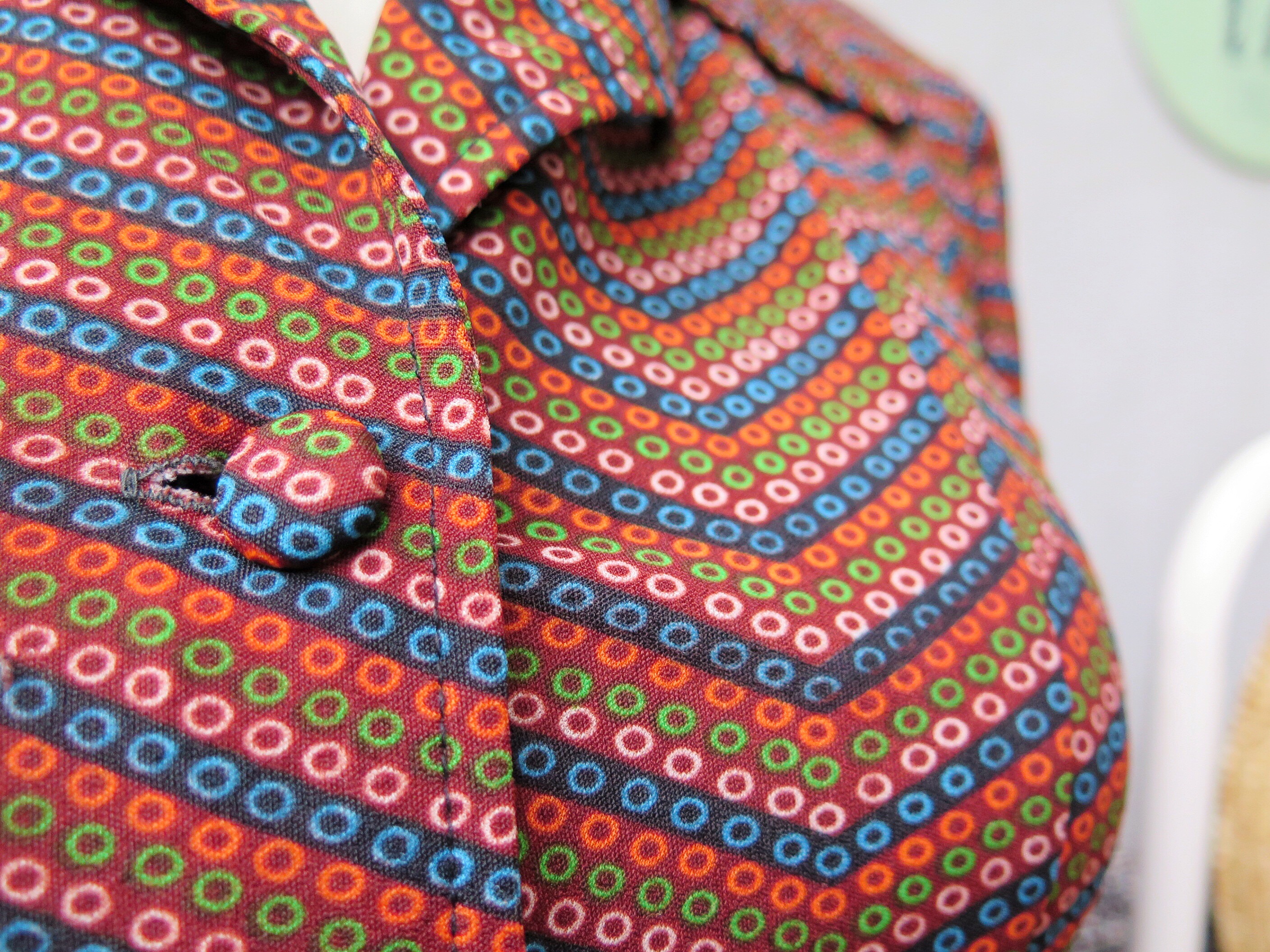 Sometimes you just want to dress up a little and be a little bit proper and all. And this provides just that with its body-skimming-but-flattering silhouette and brilliant bursts of colours all over for just that punch of pizazz. Matching fabric-covered buttons all the way!