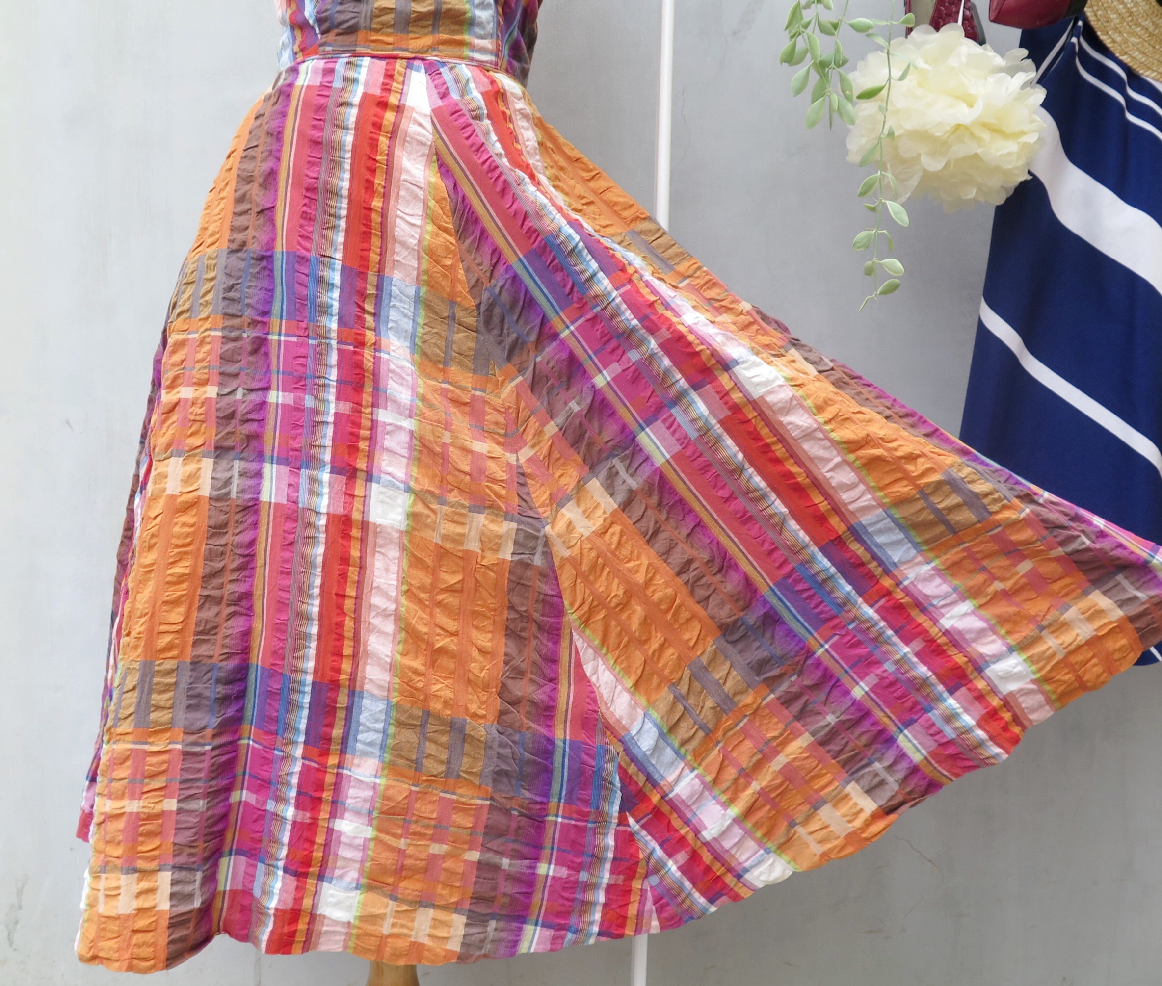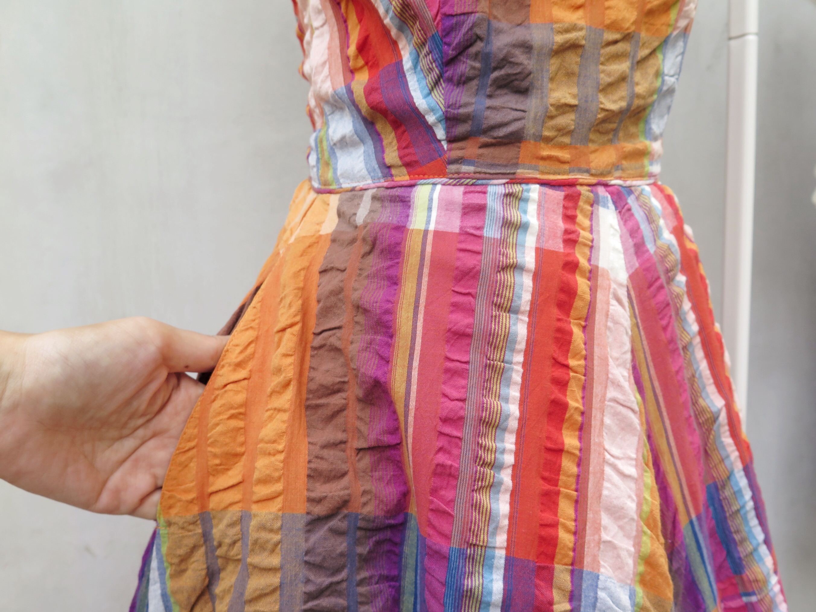 The dress isn’t just orange. Or red. It’s both, and neither at the same time. We love the additions of greens and blues in light streaks. The contrast’s rather the best we have seen in awhile.Has 2 side pockets too!