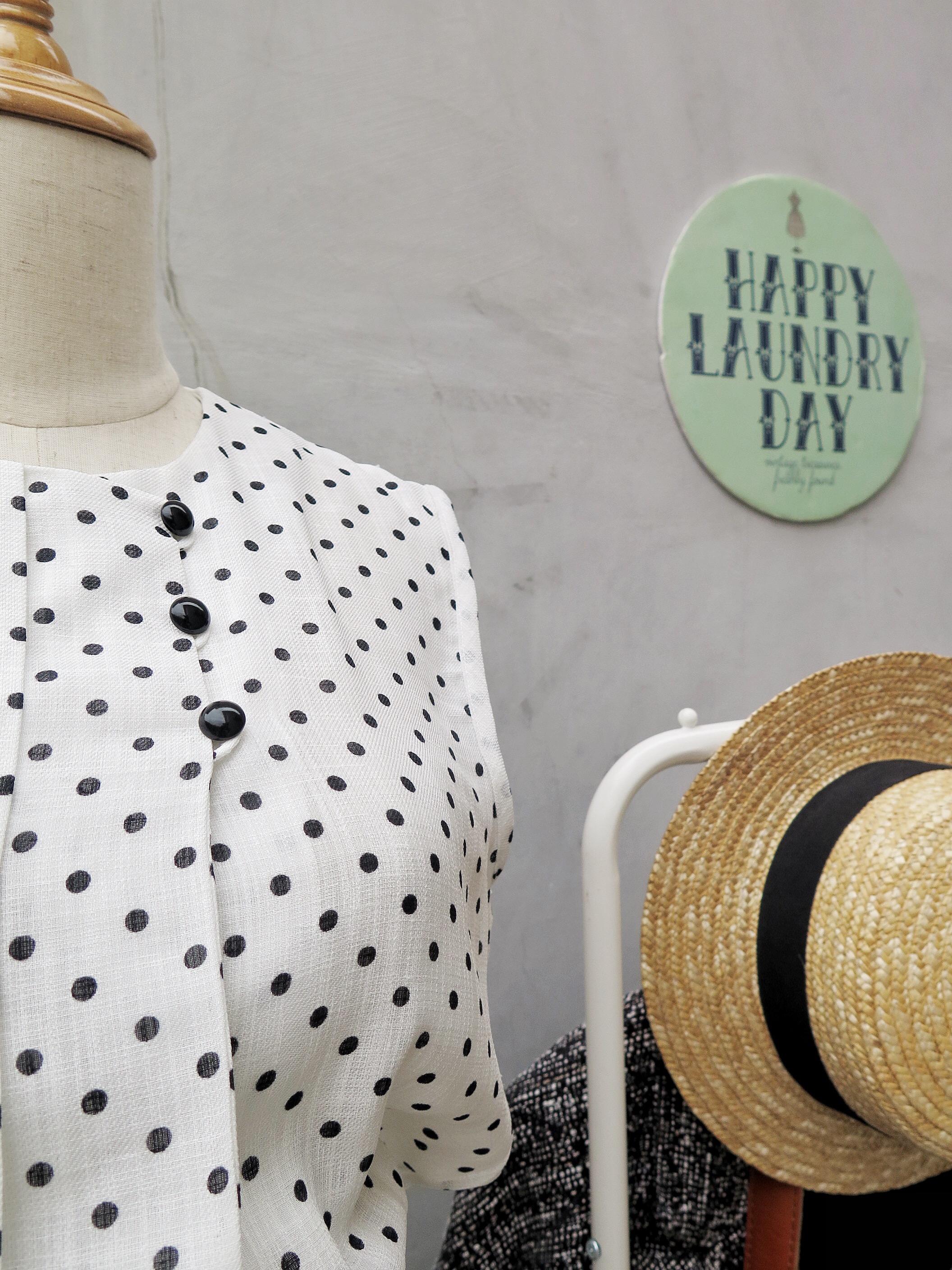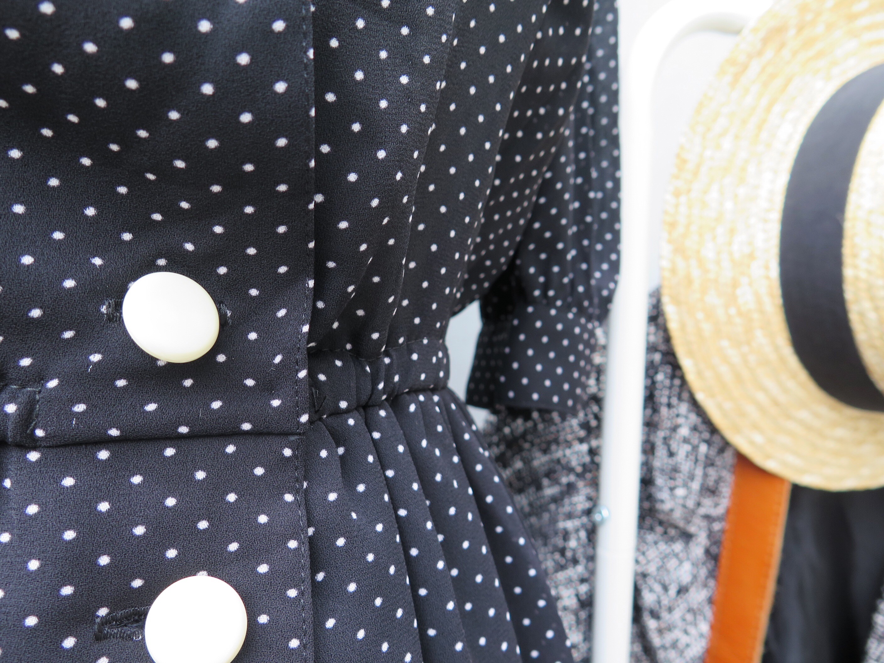 White and black. Or Black and white? We think these 2 cute vintage dresses could go both ways. 😉 Because the cutest details are in black… & white!