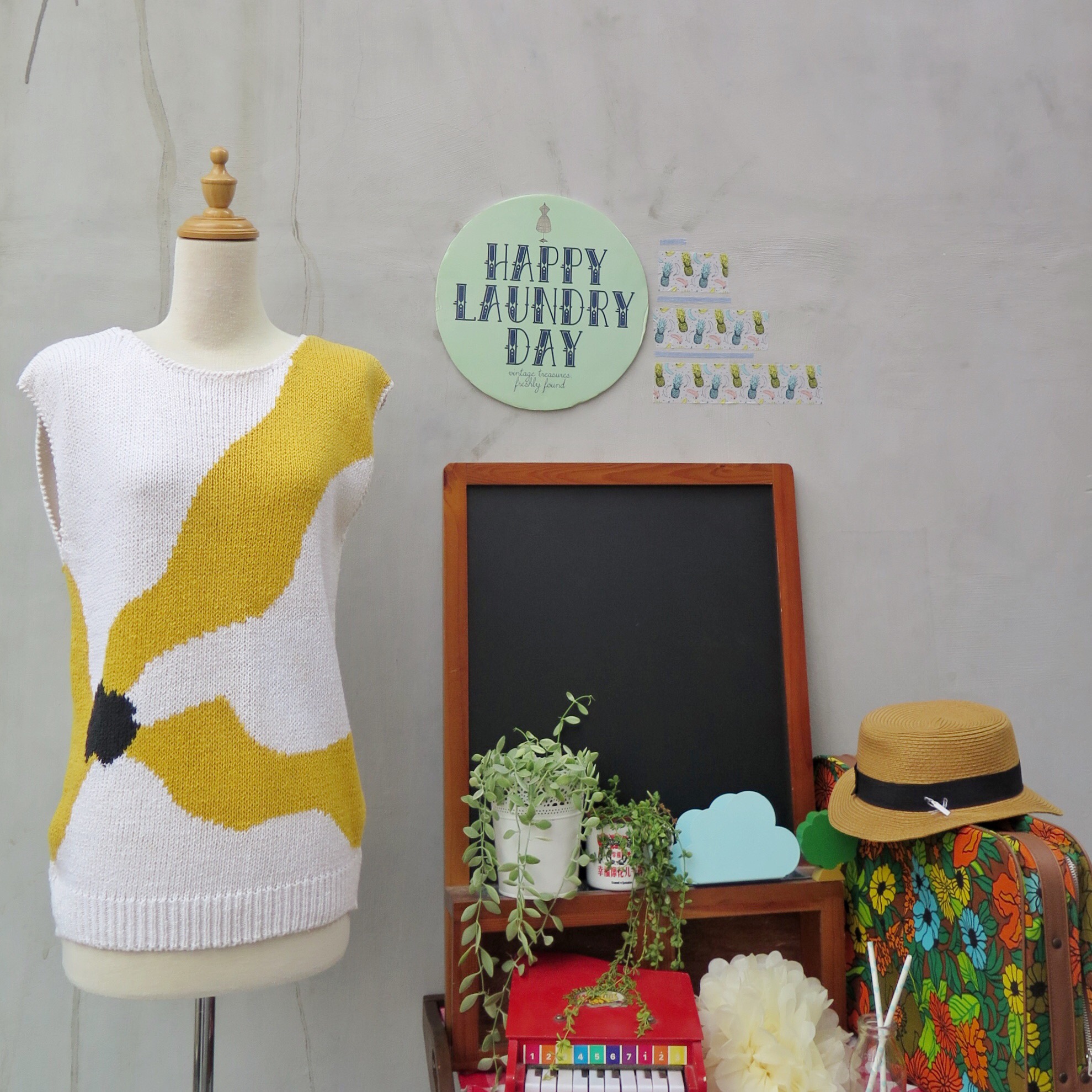 And this vintage Christian Dior vest-top is simply divine. Just a simple white, yellow, black top which would go great with the dark denim of the day. Could easily be dressed up with black heels, or down with hi-top sneakers and a cute cropped, high-waisted culottes.