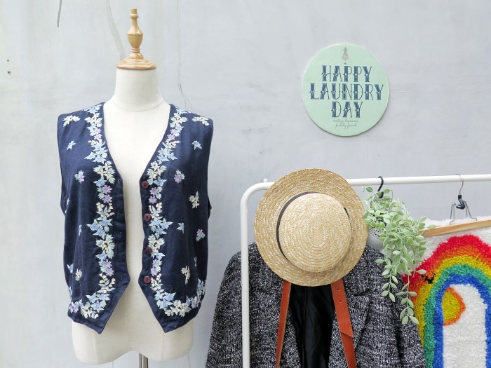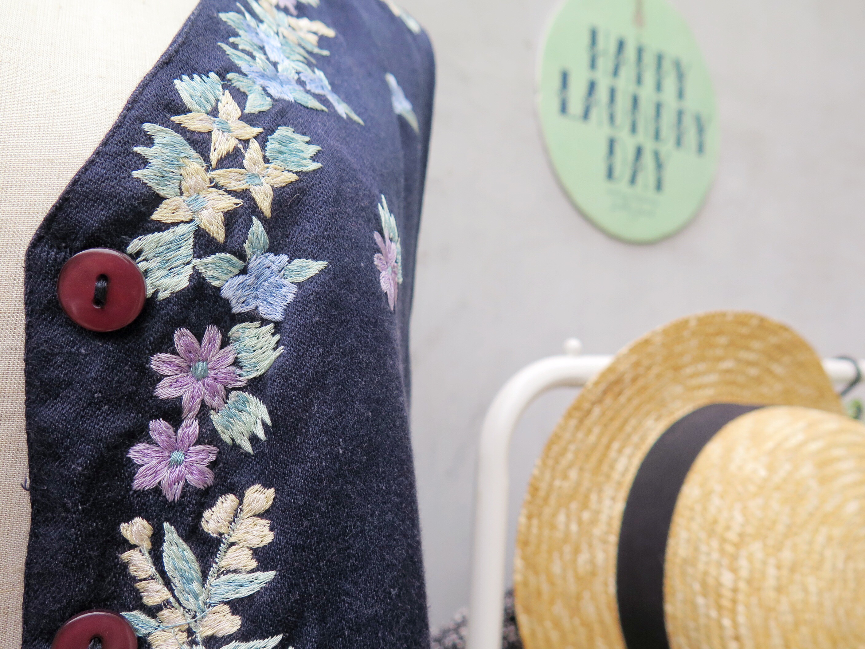 From its hippie, bohemian embroidered feel, we put this as from the 1970s/80s and we love the pseudo-suede (what a tongue-twister 😉 texture of the navy blue fabric.