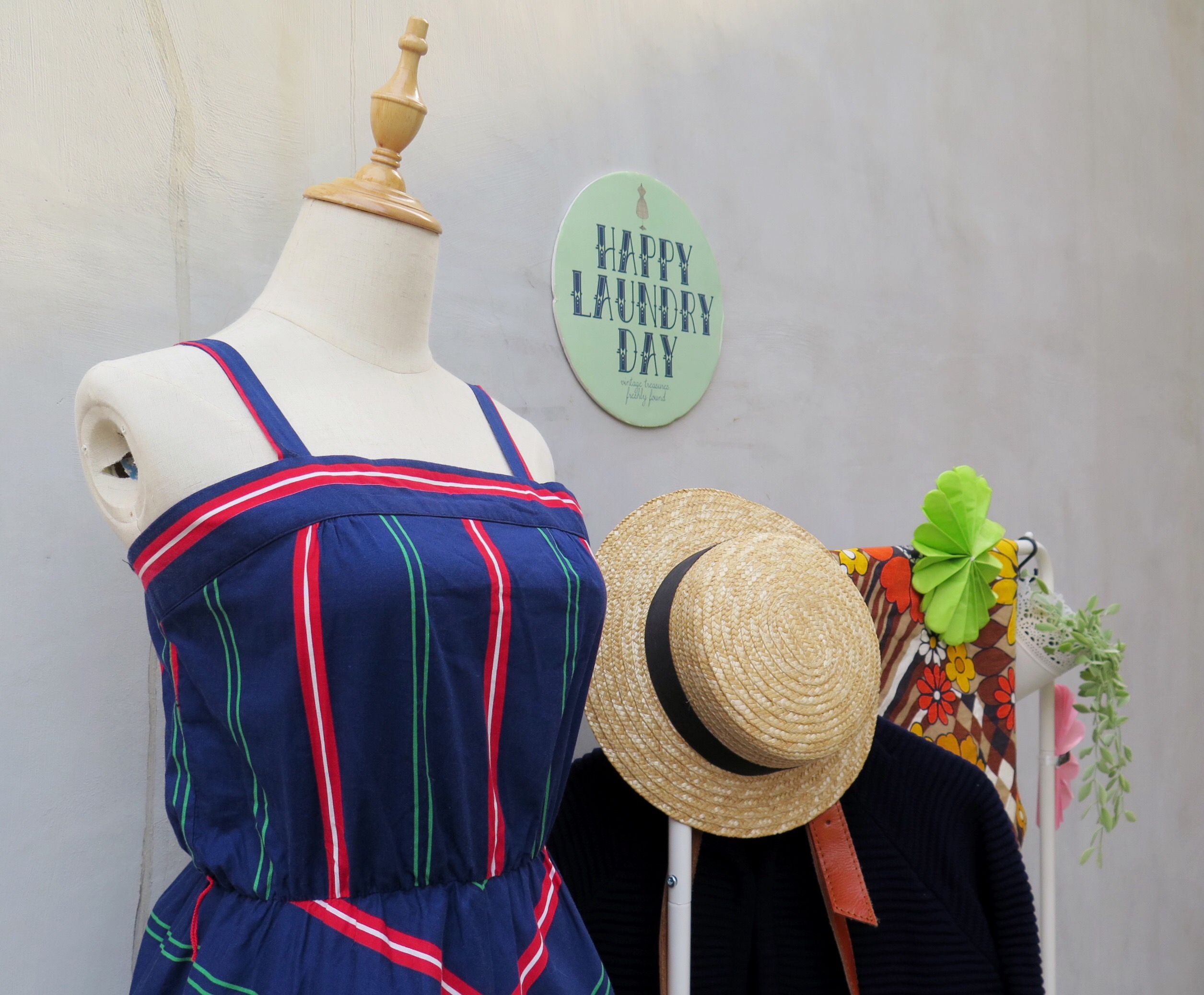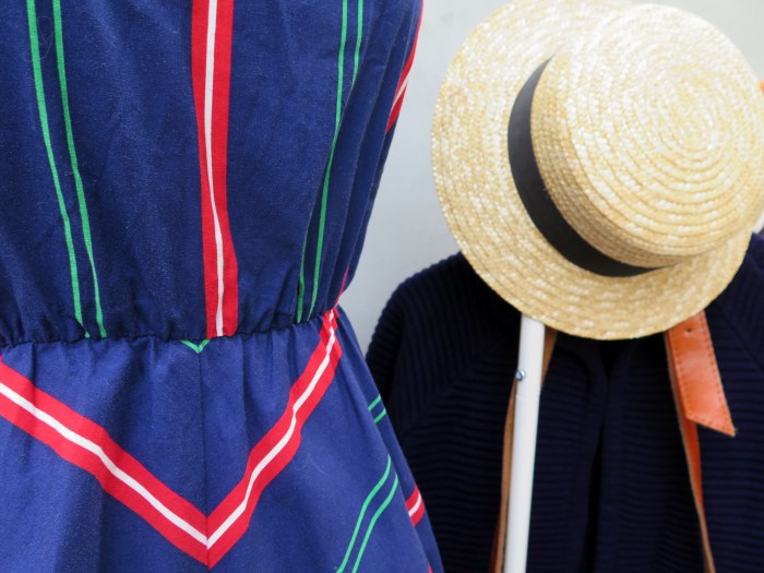 This dark navy beauty with her contrasting green, white and red stripes conjure up images of christmas in July, or fun summer BBQ parties in front lawns and pink cotton-candy floss.