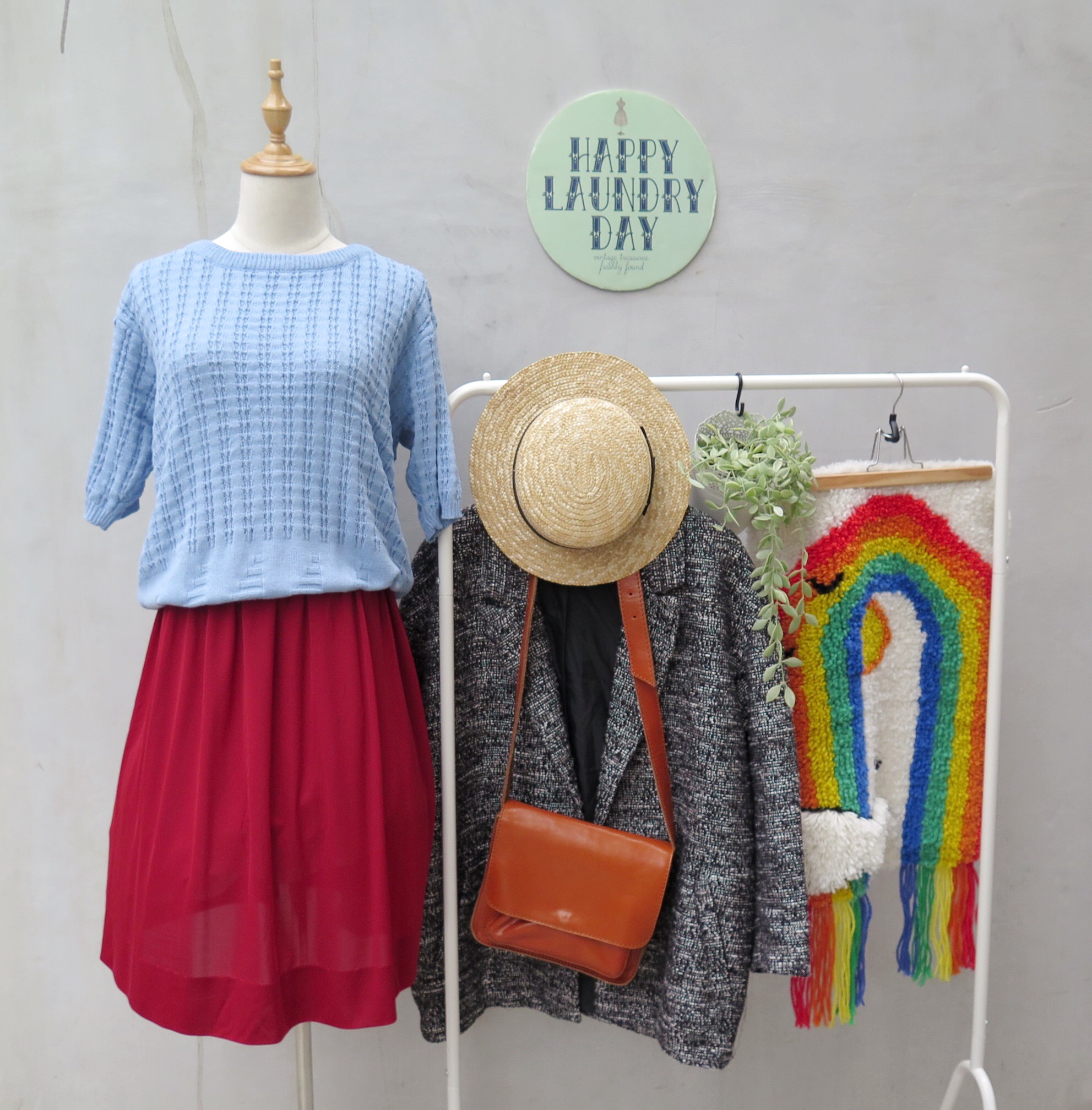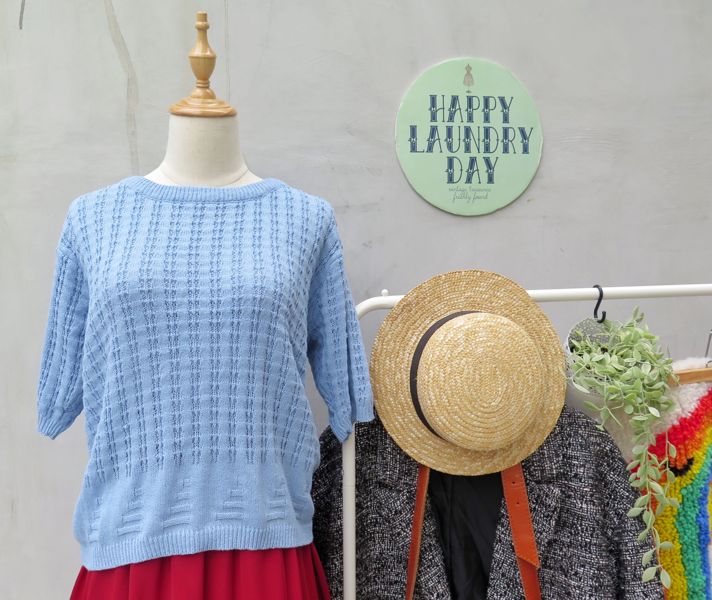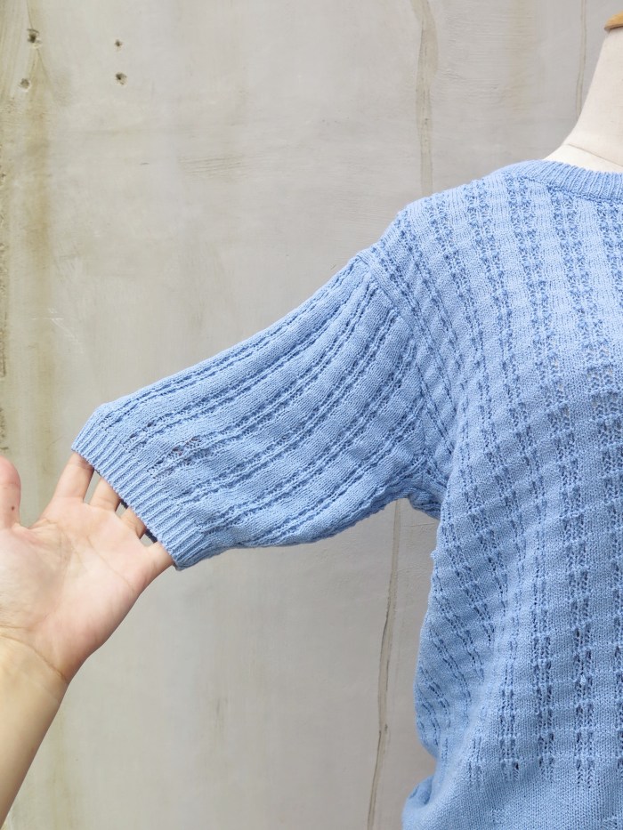 Softly does it. In a lovely medium cornflower blue and crochet/knit from the 70s/80s. Perfect with summer chinos, shorts or a little more formal with culottes 😉
