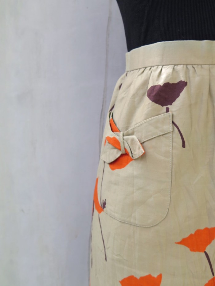 It is the colour of life and eternity. And so we feel it perfectly reflects this vintage skirt. So much fun, with cute little pockets and happy, vermillion poppy floral prints.