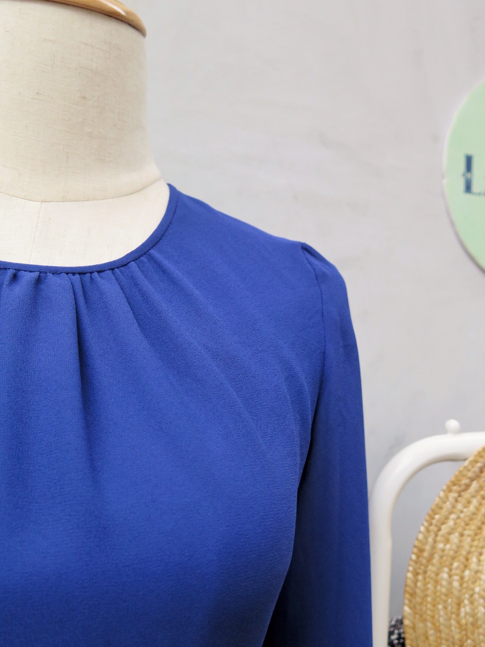 There are details here you really shouldn’t gleam over. Those shaped sleeves. The pleats so aligned you almost don’t see them. The dark cobalt blue color. And the flattering silhouette.