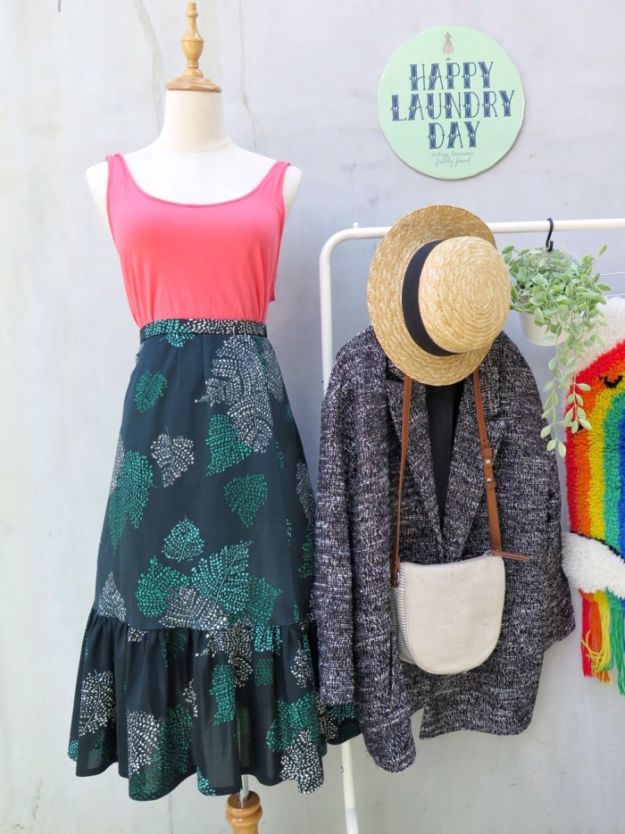 This skirt with her frills has 3 shades of green on her, and white is all she needs as a compliment!