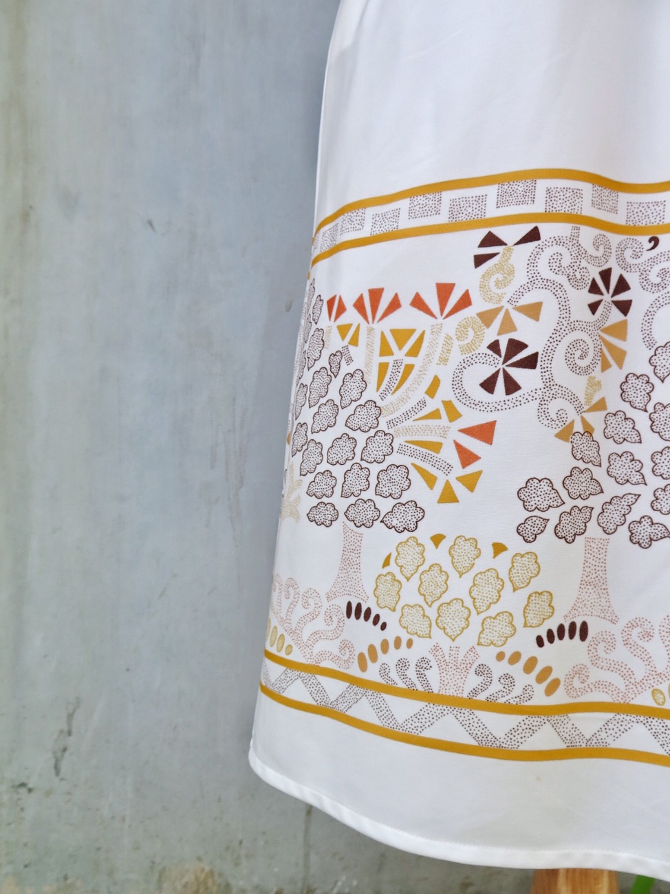 Long and wide and comfy. But with prints retro enough to hint at the days of pyrex and sitting round the kitchen table eating kraft cheese sandwiches and drinking tang from brown mugs with 70s geometric designs.