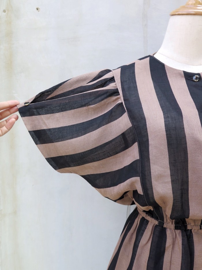 The vertical stripes on this black/brown (a really trendy colour combination, we have just realised!) keep things looking streamlined and the dark black and gold buttons just that little glint of interest 😉