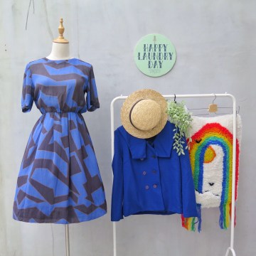 Chloe | Vintage 1960s 1970s Royal blue dress with White piping and Mentos sweet-like buttons