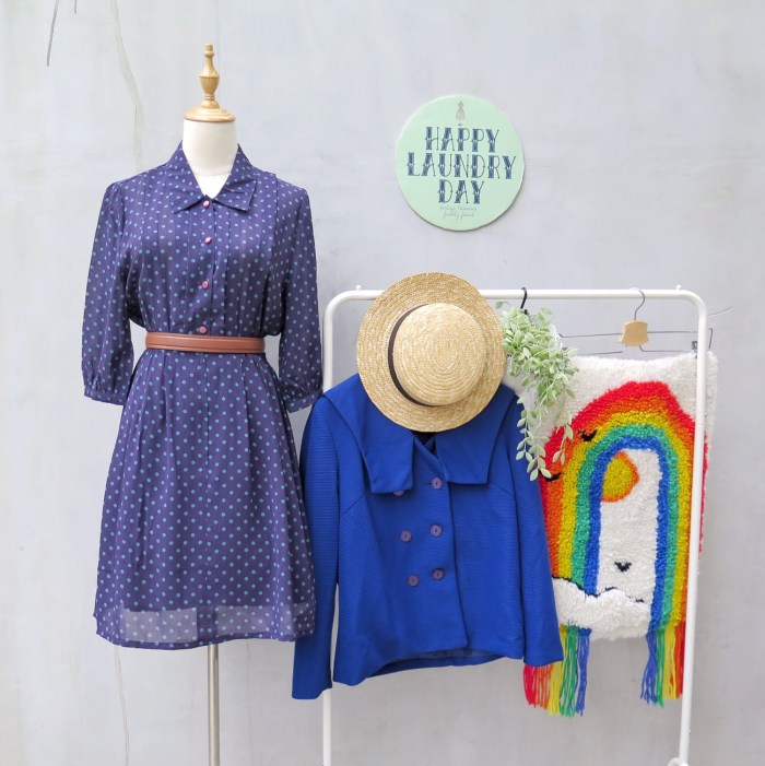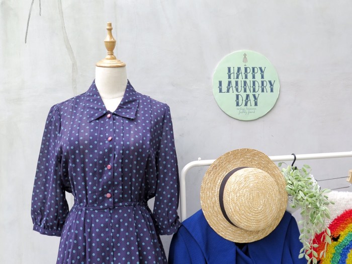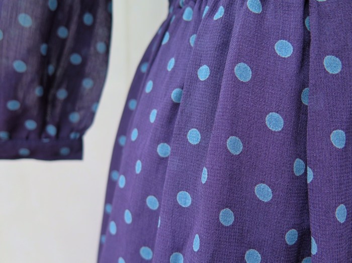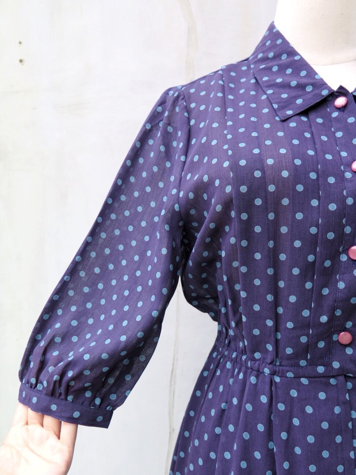 Reminding us of a slightly more modern version of Mary Poppins and flying through rooftops at night with black brollies is this vintage 1960s/70s three-quarter sleeve polka dot dress.