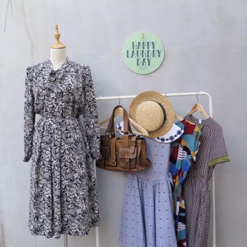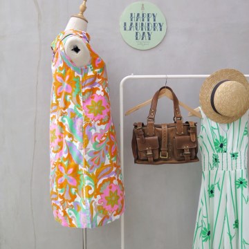 Tia | Vintage 1960s 1970s Fern tropical print Pussy bow dress