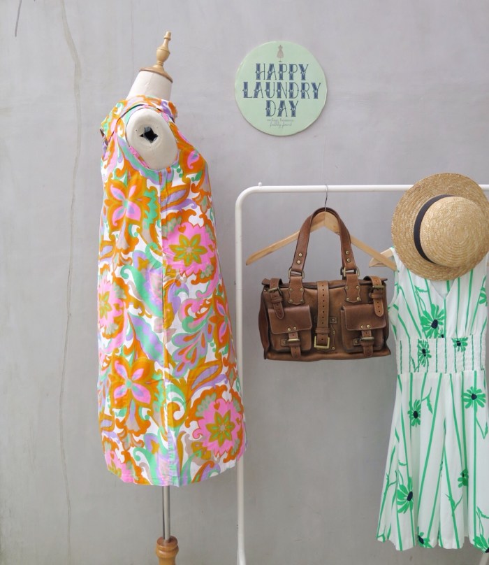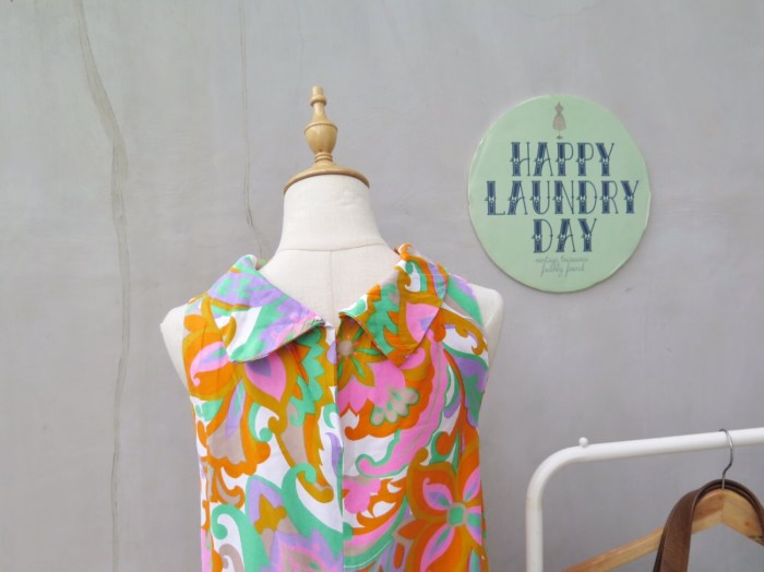 We imagine it would have been worn with white thigh-high A-go-go boots in its heyday, with huge white plastic hoop earrings and huge sunnies perched on the head.