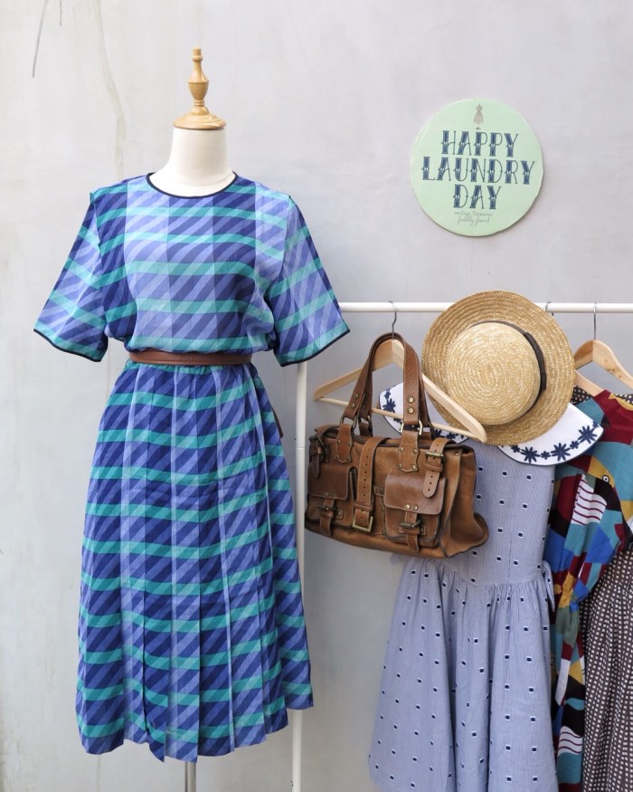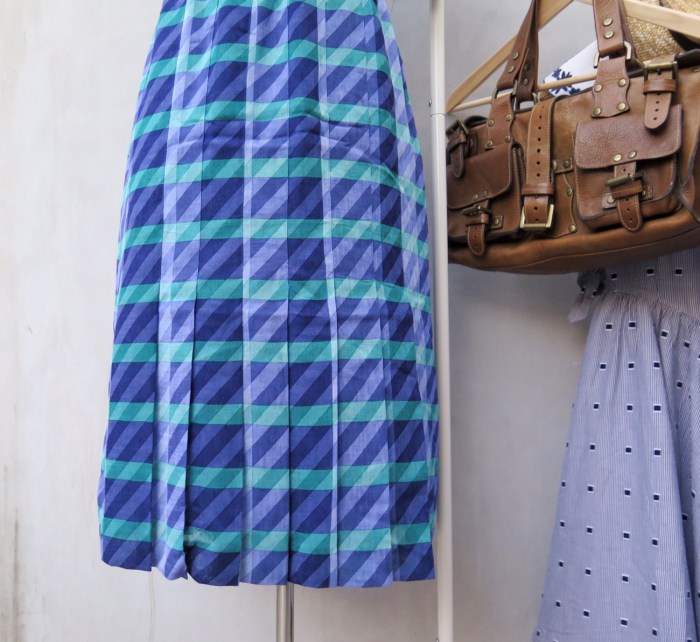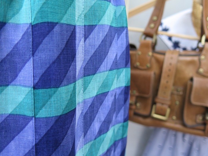 Lines going this way and that maketh a real cool not-checkered-not-striped pattern. And the mix of turquoise green and indigo blue on the same side of the color wheel also gives the diagonal and horizontal stripes a calming sense of cohesion.