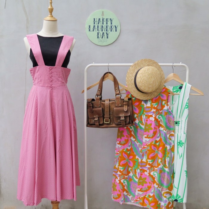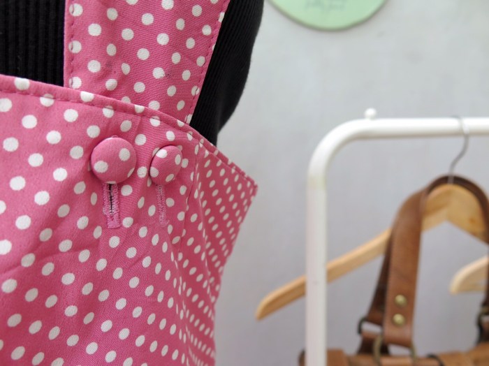 A simple retro 1980s rose-pink and white polka dot jumper dress which would be fabulous just with a white tee underneath. Would be great with denim too π