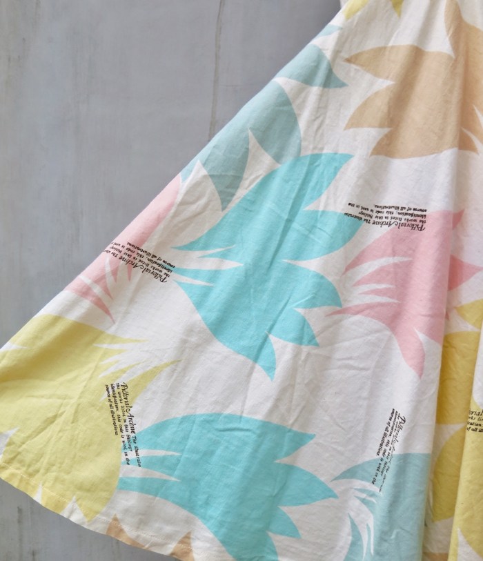 It is cut just for the tropics, sleeveless and not too strappy so you could just change your footwear and waltz right into a nice restaurant (dressing for occasions while on holiday isn’t always the easiest thing, we know)! And it has the gentlest shades of pastel pinks, mint green, yellow on a off-white base. We actually like that the fabric isn’t silky and slinky, so it lends the vibe of a serious person on holiday, if that makes any sense π