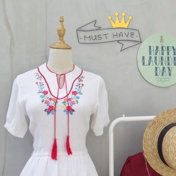 Annabella | Vintage 1960s 1970s embroidered flowers boho chic ethnic retro white summer frock dress