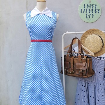 Jellybug | Vintage 1950s 1960s white blue polka dot print swing style dress